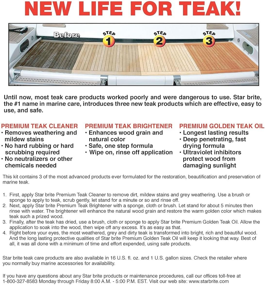 STAR BRITE Teak Care 3 Step Kit - Teak Cleaner + Teak Brightener + Teak Oil - 16 OZ (081216)
