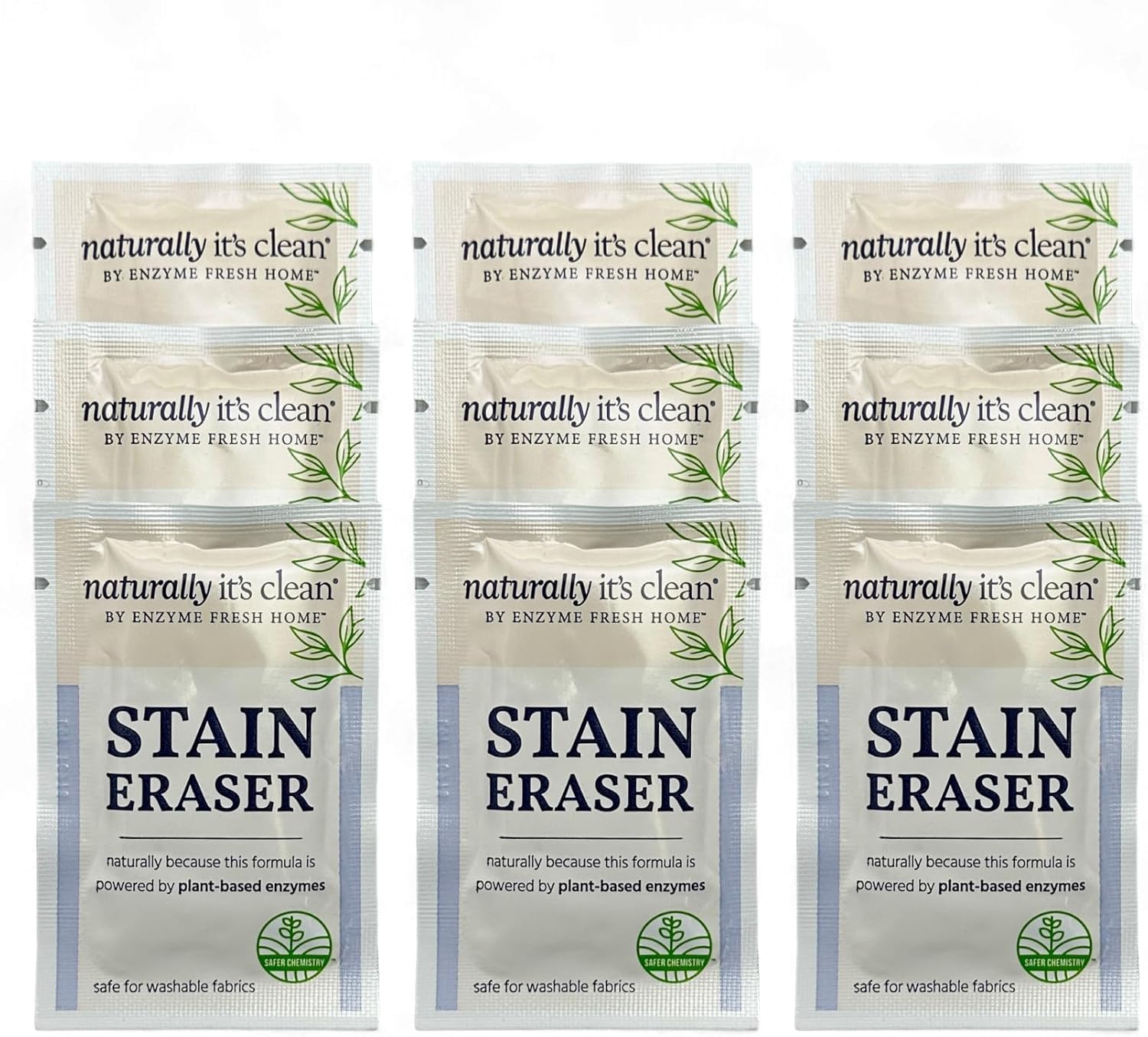 • GET CONVENIENT STAIN REMOVAL ANYWHERE YOU GO. Keep our individually wrapped Stain Eraser towelettes in your purse, pocket, backpack, suitcase and office. Fabrics dry without leaving behind a ring or chemical residue.