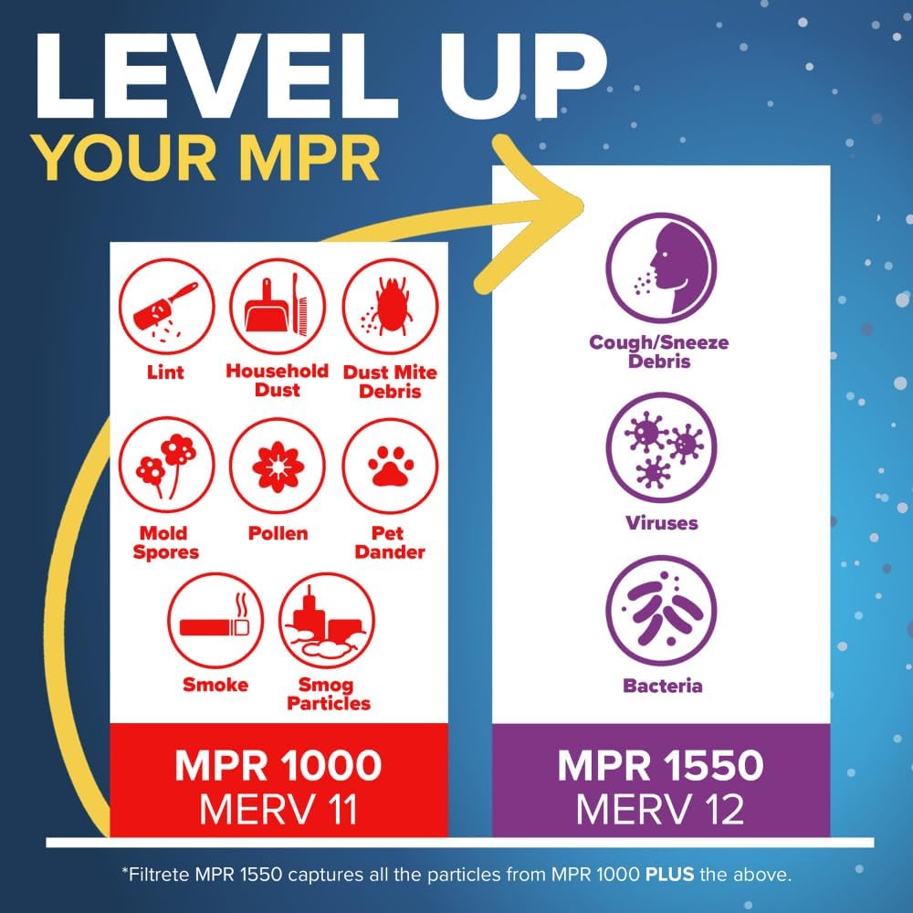 • COUNTLESS MICROPARTICLES: With a 1000 MPR and MERV 11 rating, your Filtrete Filter will help capture many microparticles from the air passing through it