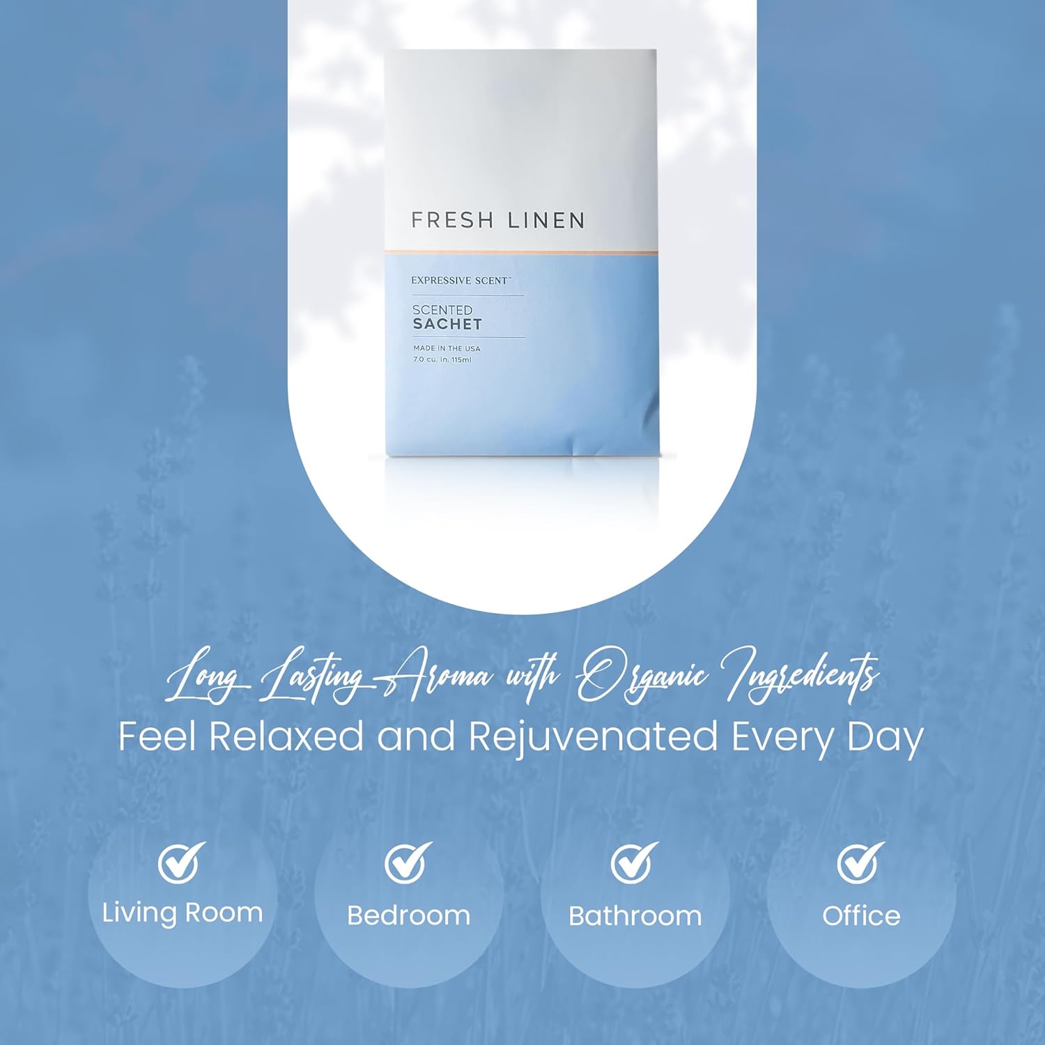 6 Pack Fresh Linen Large Scented Sachet Envelope by Expressive Scent