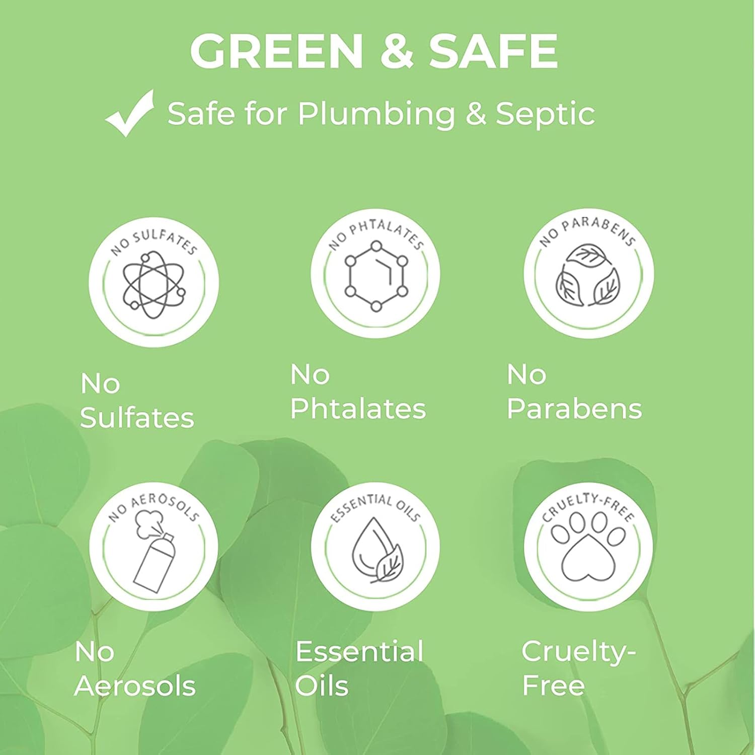 • ECO-FRIENDLY FORMULA. Made of all-natural essential oils, Just A Drop is a safe and eco-friendly alternative to aerosols. The compact bottle contains no parabens, sulfates, aerosols, or phthalates and is safe for plumbing and septic systems.