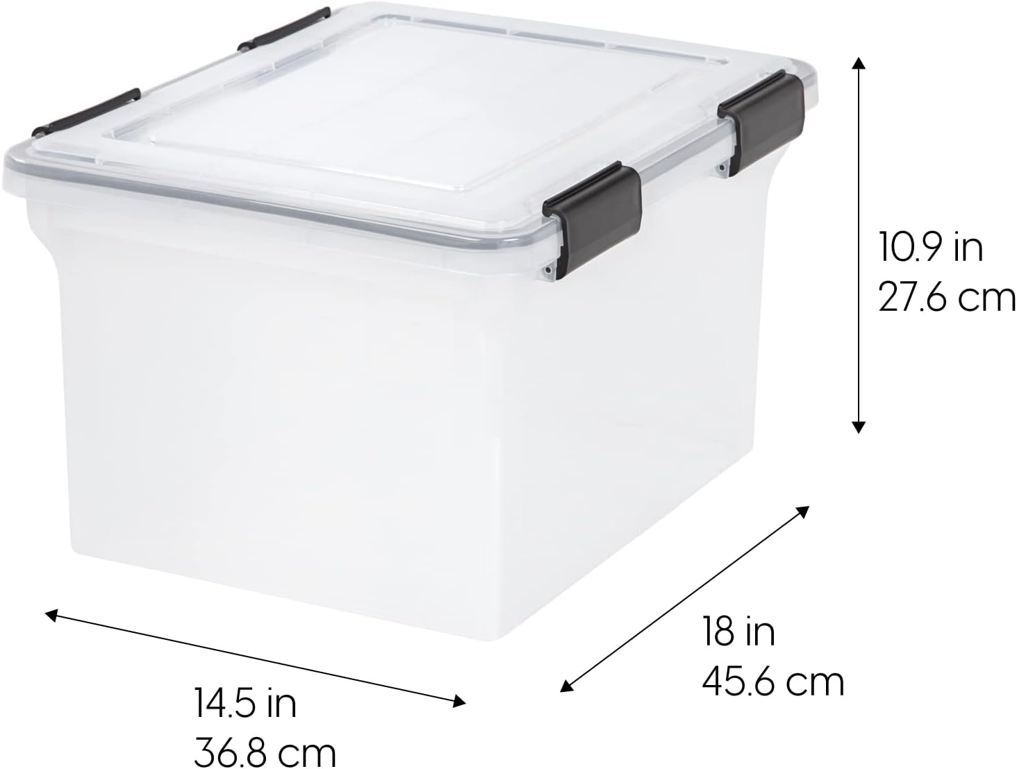 • WEATHERPRO – IRIS USA WeatherPro Heavy Duty Plastic Storage Bin Tote Organizing Container with Durable Lid and Seal and Secure Latching Buckles has high quality heavy duty seals in the lids to preserve and protect valuables and important documents. The heavy duty storage bin creates a vacuum-like environment within the storage container tote blocking out moisture, dust, and insects.