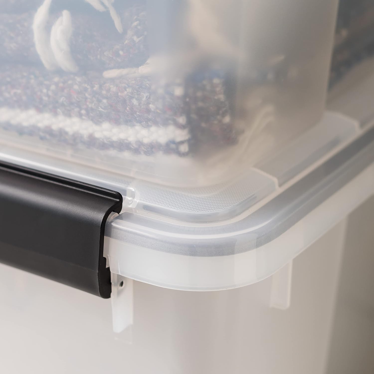 • WEATHERPRO – IRIS USA WeatherPro Heavy Duty Plastic Storage Bin Tote Organizing Container with Durable Lid and Seal and Secure Latching Buckles has high quality heavy duty seals in the lids to preserve and protect valuables and important documents. The heavy duty storage bin creates a vacuum-like environment within the storage container tote blocking out moisture, dust, and insects.