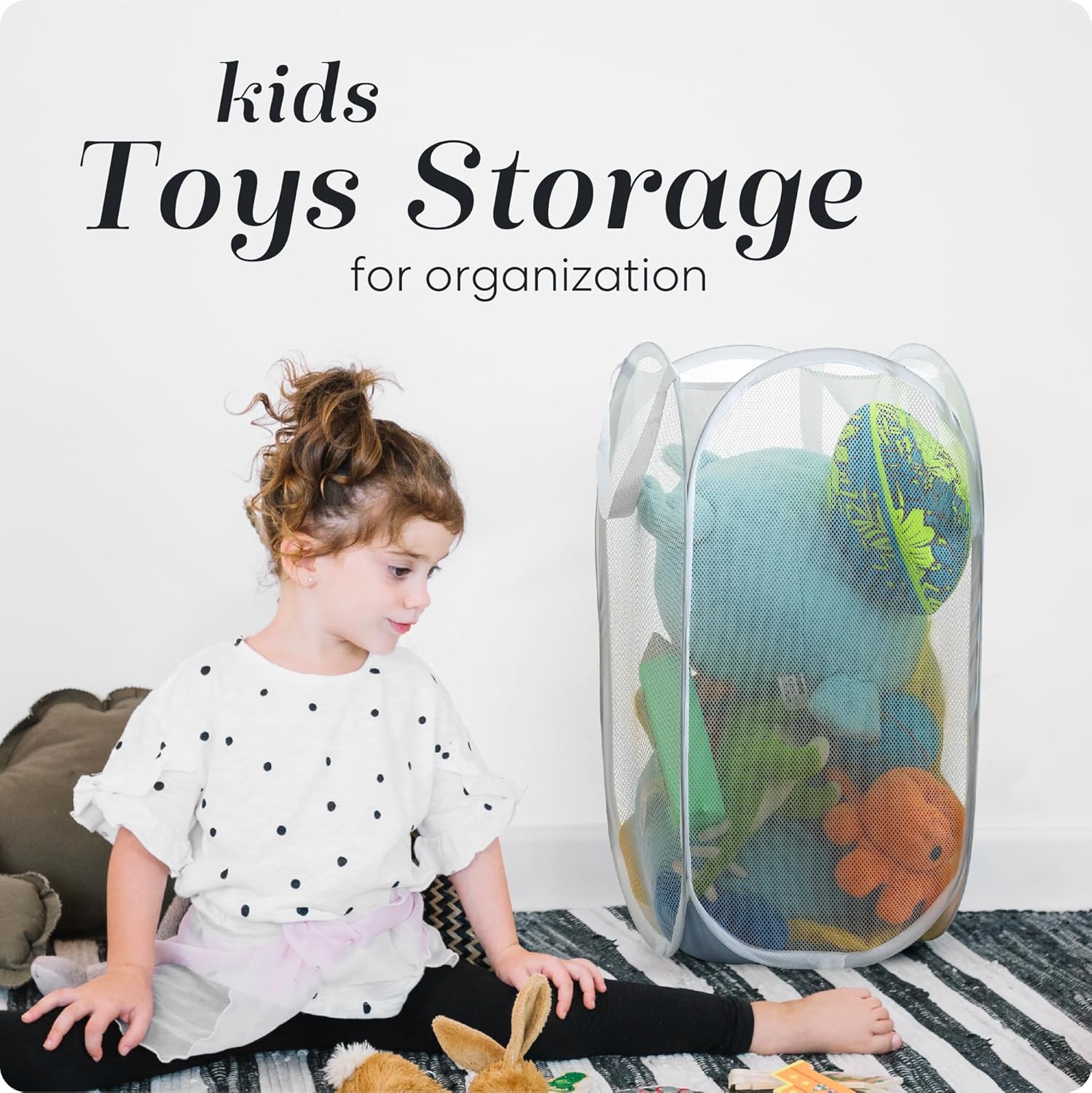 Handy Laundry Collapsible Mesh Pop Up Hamper with Wide Opening and Side Pocket - Breathable, Sturdy, Foldable, and Space-Saving Design for Clothes and Storage (White)