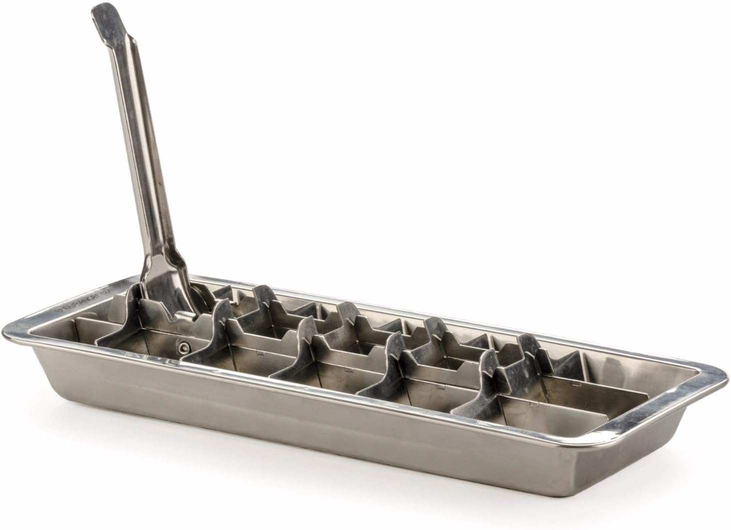 Vintage Inspired Ice Cube Tray | 18/8 Stainless Steel | 18 Slot Ice Cube Tray | Easy Release Handle, 11" | Retro Design for Bars & Kitchens | Levers Remove Cubes | Dishwasher Safe
