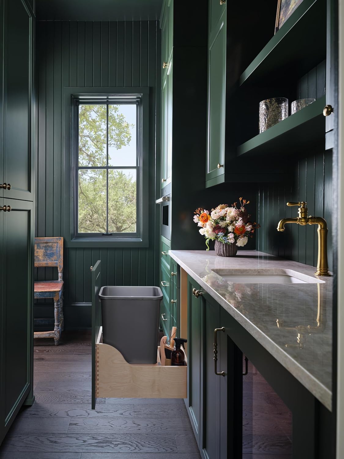 • Pullout Waste Bin: Features a BLUMotion undermount soft-close full-extension concealed slide system that glides in and out with ease and keeps dirt and debris away; Constructed with dovetail maple wood construction