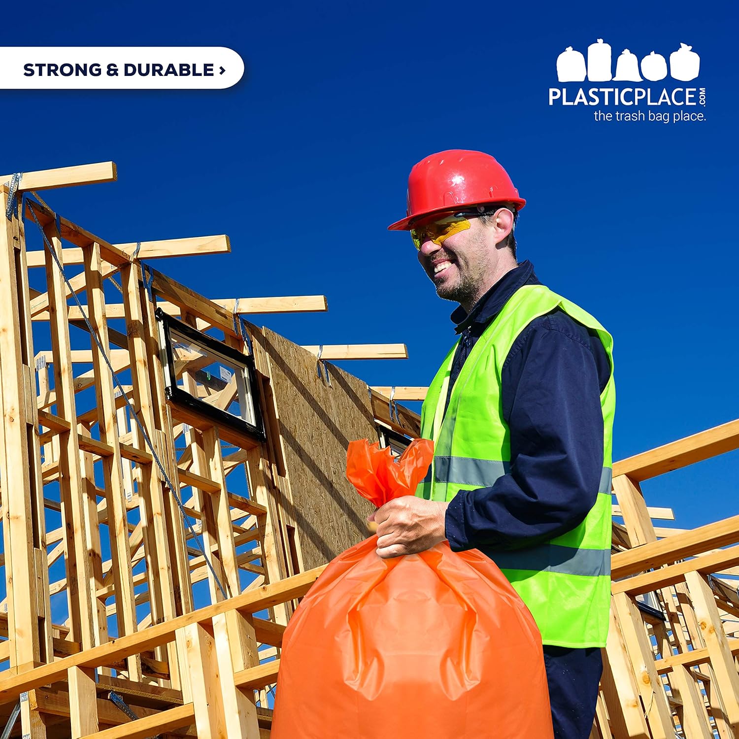 Plasticplace 42 Gallon Trash Bags |3.0 Mil | Orange Heavy Duty Contractor Trash Bags | 33" x 48", 50 Count (Pack of 1)
