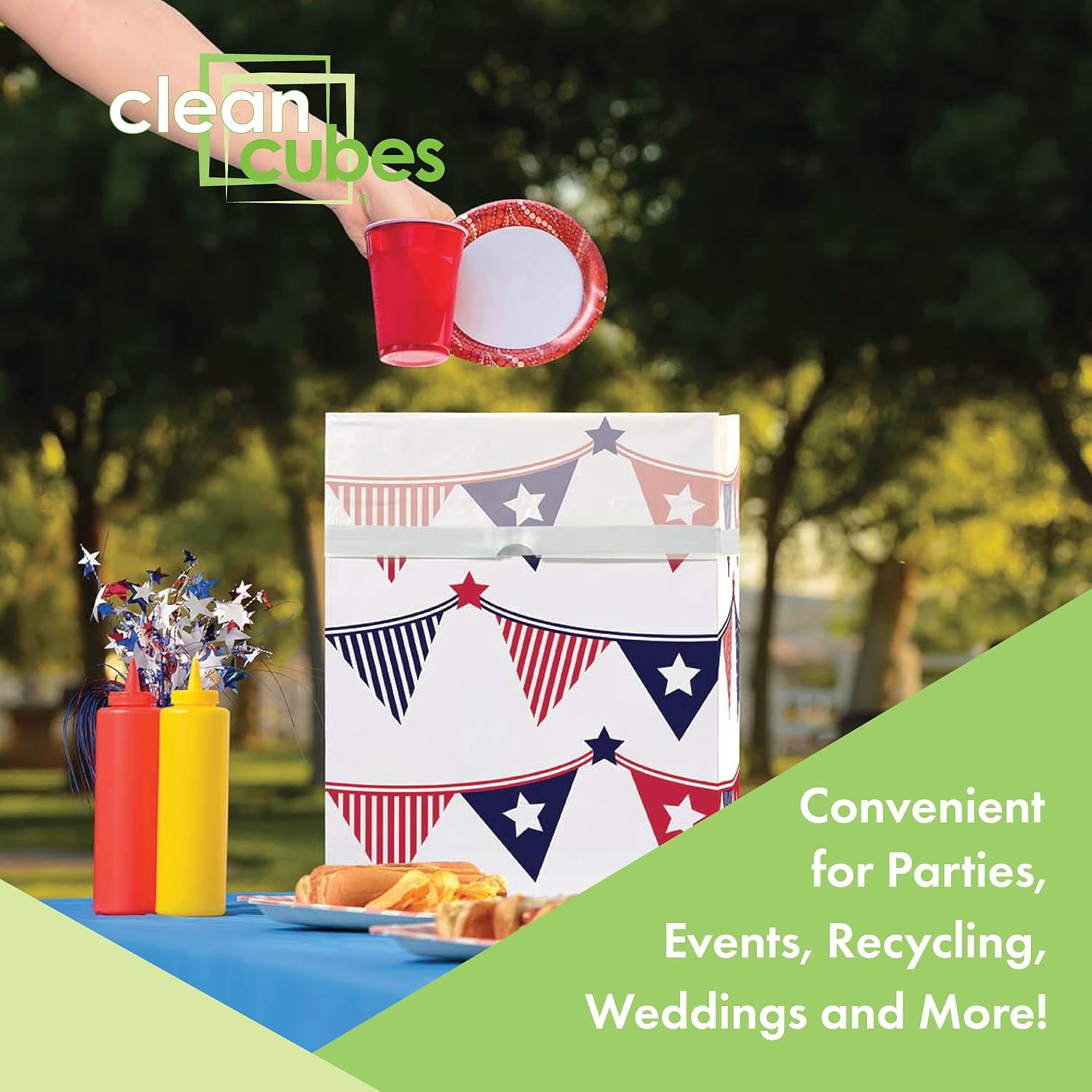 • ✅ 【EFFORTLESS CLEANUP & DISPOSAL】Simply unfold, use, and toss — keep your event clean and mess-free without extra effort. Clean Cubes are disposable recycling bins and trash cans with a patent-protected design and custom-fitted trash liner in each bin.
