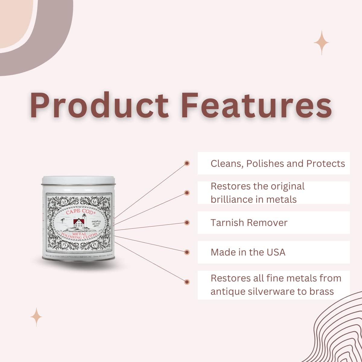 • Tarnish Remover: Our moist polishing cloth removes old tarnish, restores the original brilliance in metals, prevents new tarnish, and gives your valuables a layer of protection with our revolutionary anti-tarnish finish.