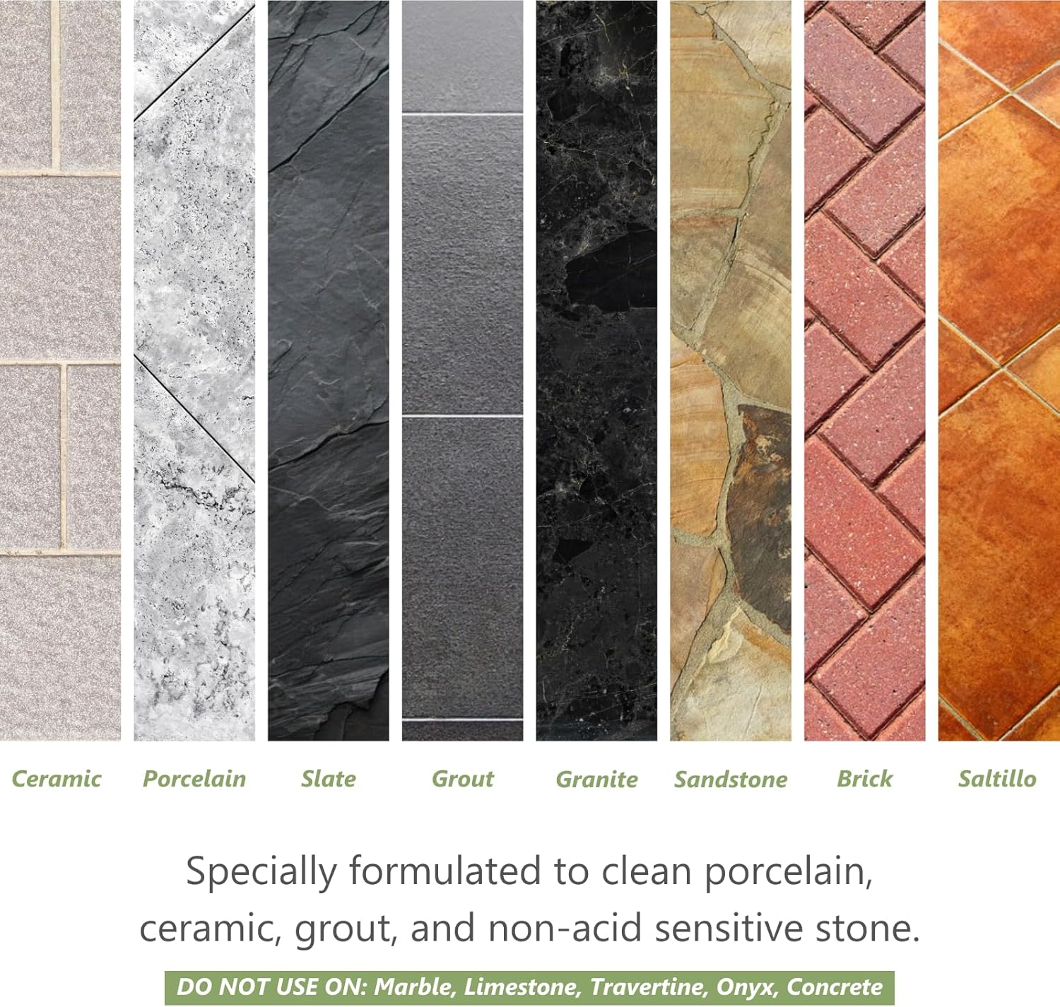 • Concentrated cleaner removes grout haze, efflorescence and mineral deposits. Do not use on marble, limestone, travertine, onyx or concrete.