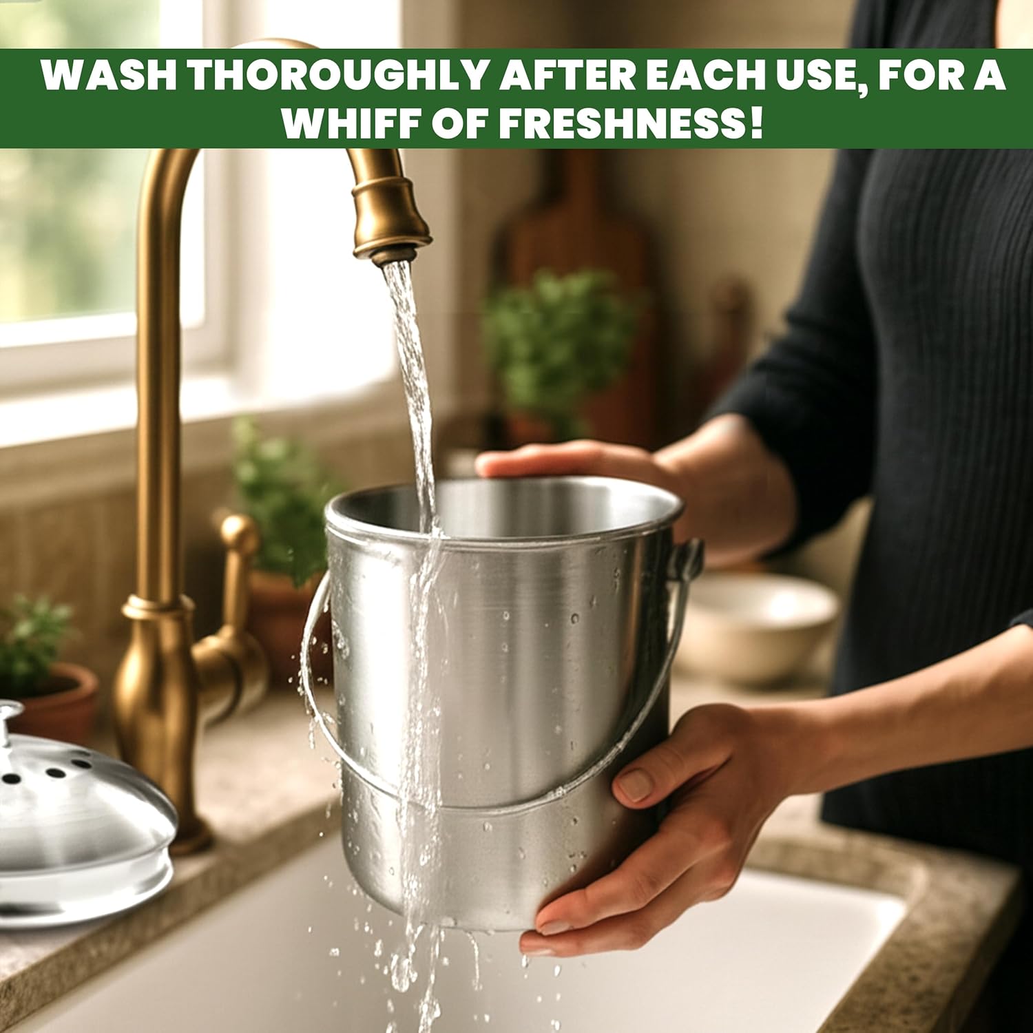• This compost bin having capacity of 1.3 gallon is manufactured with stainless steel for optimal longevity and durability that won't scratch, crack or chip