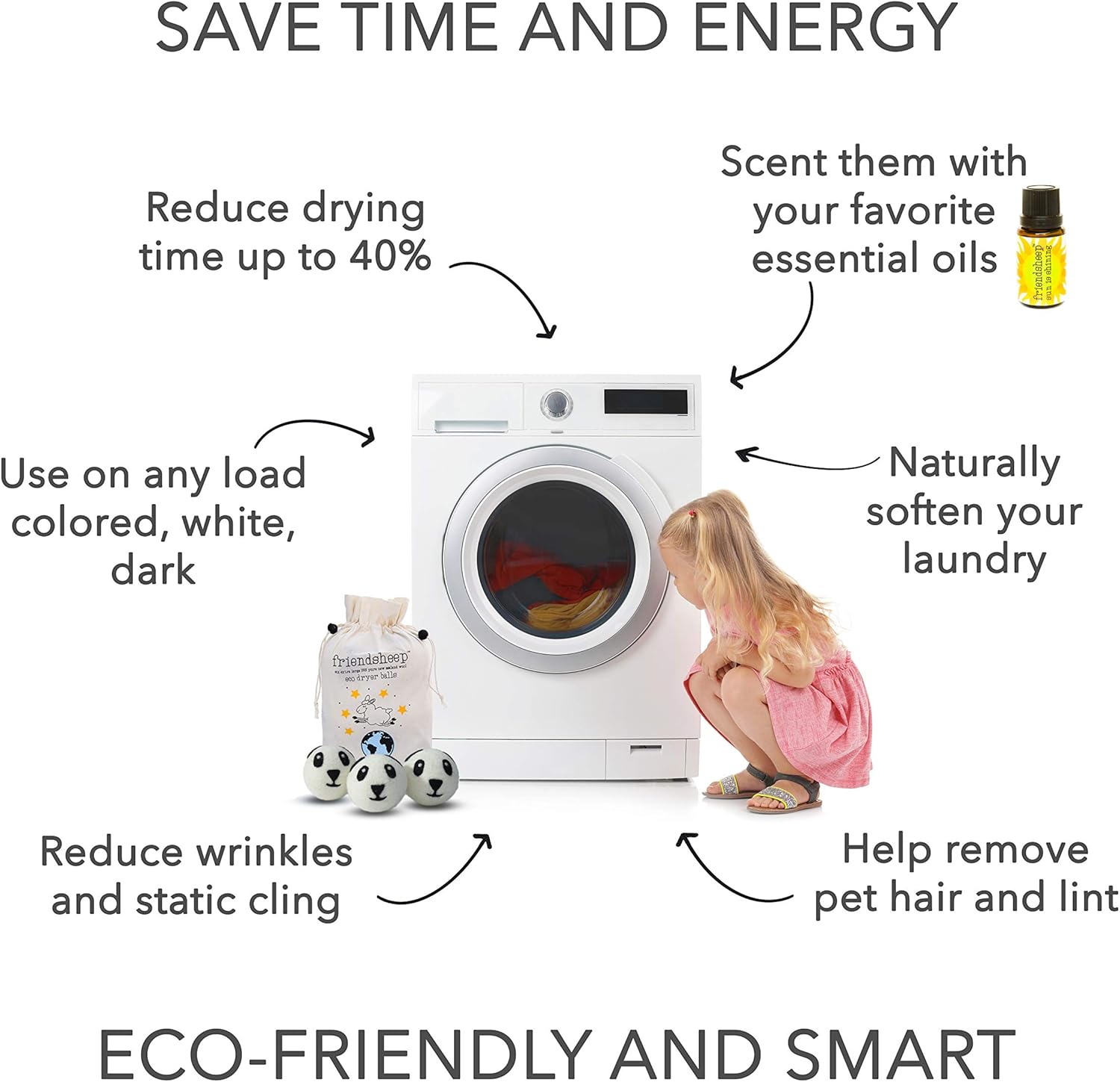 • REUSABLE 1000+ TIMES. Ditch dryer sheets & liquid fabric softeners. Enjoy soft and fluffy laundry, reduce wrinkles and static cling, reduce drying time up to 40%. Sheets and towels are fluffier, less balling and twisting. SAVE TIME, ENERGY AND MONEY!