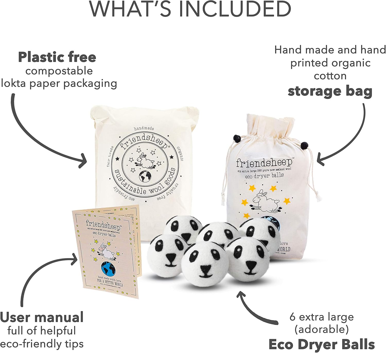 • PLASTIC-FREE + COMPOSTABLE. 6 XL wool balls in a cotton storage bag. The perfect eco-friendly all-occasions gift: Birthday, Baby Shower, Bridal Shower, Housewarming, College Graduation, BFF Day, Christmas, Teacher Appreciation, Mothers Day, and more!