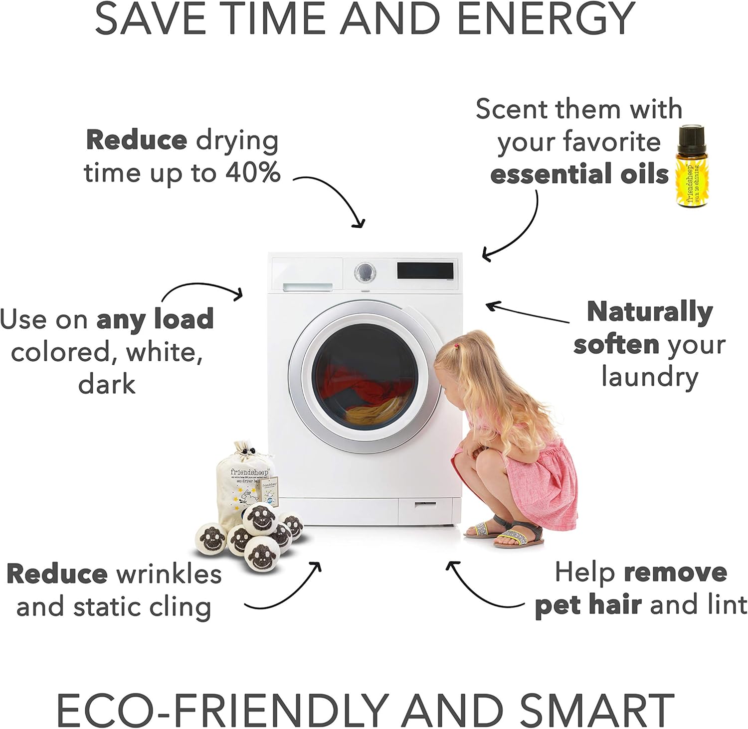 • Reduces Static and Pet Hair: Helps control static cling and naturally attracts pet hair and lint from clothing.