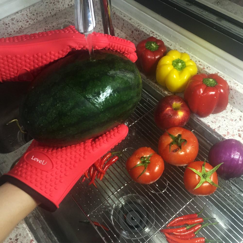 • Multifunctional And Useful Kitchen Tool Or Bbq Accessories: LoveU. heat resistant gloves let you safely and comfortably when you are cooking, BBQing, boiling water, pickling, opening cans or other household tasks. It is resistant to heat、oil、water and stain while protect your hands.