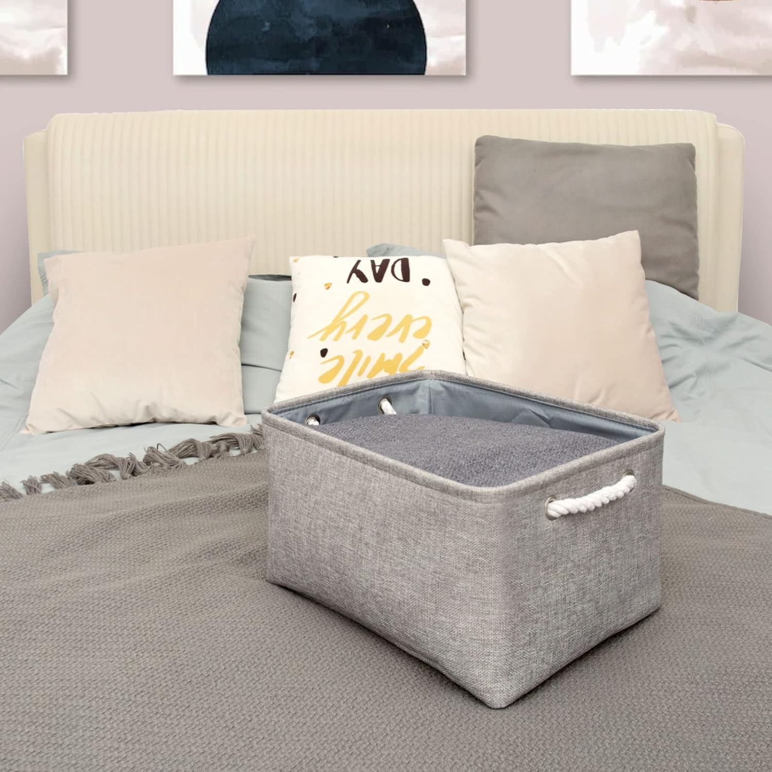 • LARGE STORAGE BIN & PROFESSIONALLY & PRACTICAL - 15.7L×11.8W×8.3H, can be used as storage baskets for shelves,closet storage bins, linen closet organizer,nursery basket storage,laundry baskets, bathroom towel storage,also can organizing baby Stuff,clothing, kid’s toys,pet toy products, laundry, towel, bedsheet,sport gears,suitable use in bedroom, living room,study room,rest room,bathroom, kitchen,office,shelf,closet and cabinets. excellent choice for keeping your space nice,tidy and organized