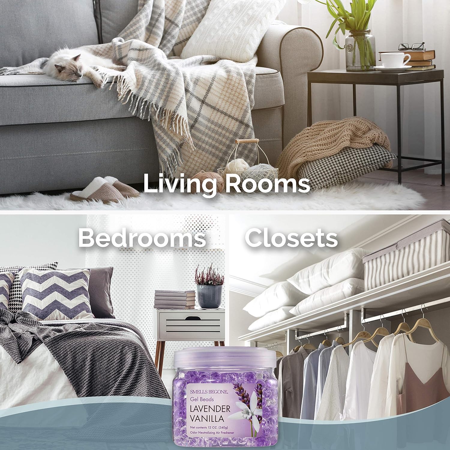 SMELLS BEGONE Odor Eliminator Gel Bead Value Pack - 72 oz - Air Freshener - Eliminates Odors in Bathrooms, Pet Areas, Boats, RVs & Cars - Made with Essential Oils - Lavender Vanilla Scent