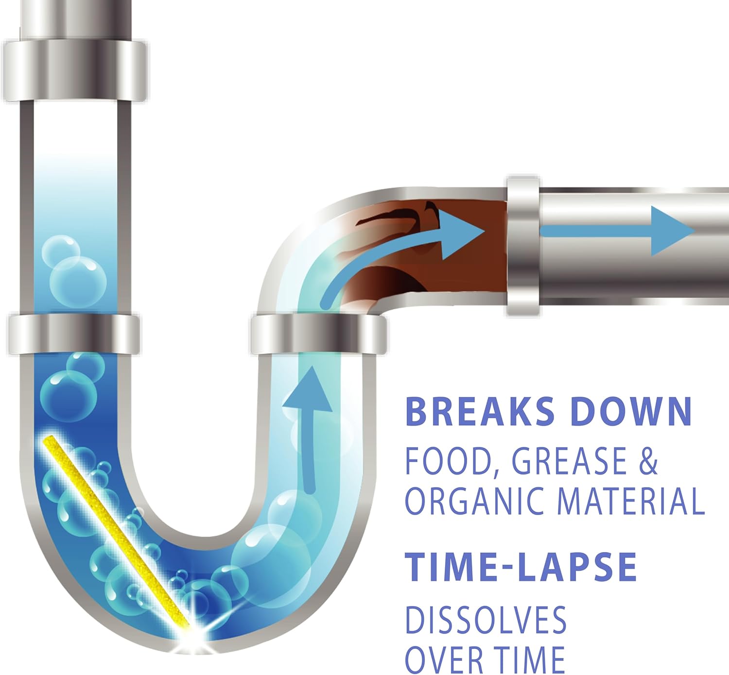 • KEEP WATER FLOWING STRONG & DRAINS ODOR-FREE: Save time and money by avoiding extra plumber visits with this effective drain-cleaner odor eliminator. Instead of wrangling with drain snakes, simply insert 1 stick a month into each of your drains to prevent water buildup and keep your drains smelling fresh.