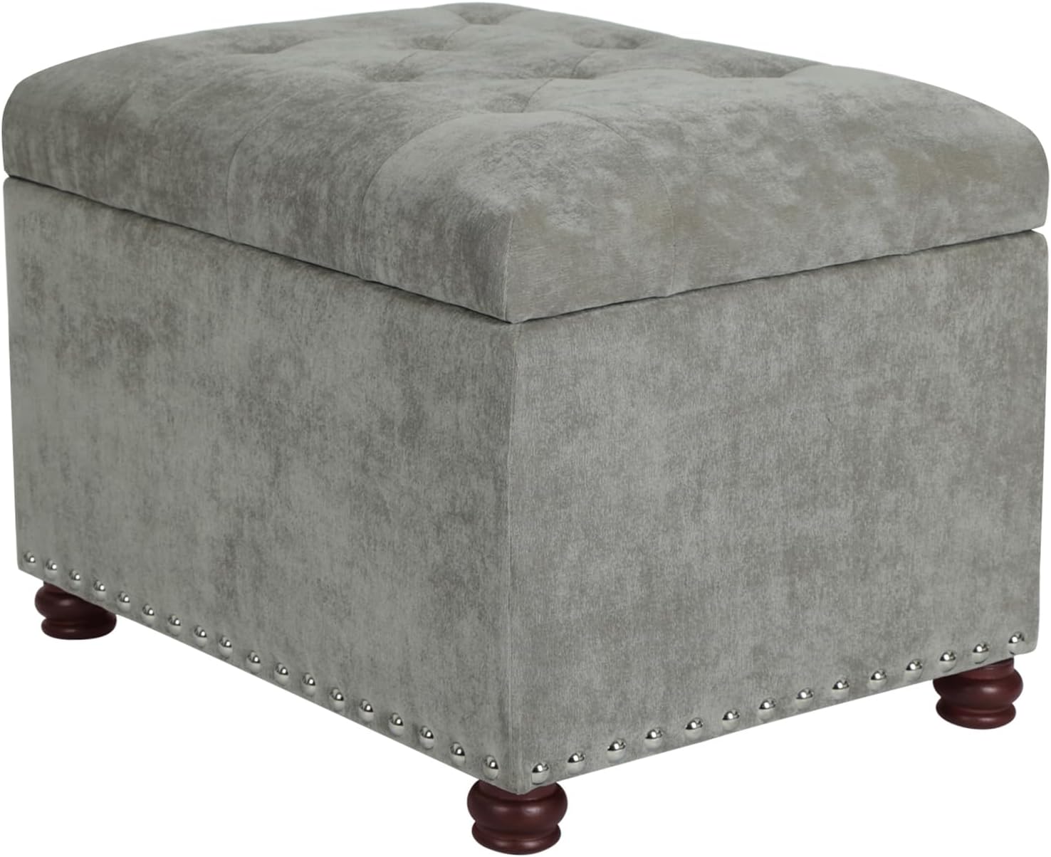 • STYLISH DESIGN CONCEPT: Soft fabric,grey color,upholstered top,wood frame,silver rivet gives this ottoman a rich, luxurious look to any room in the house