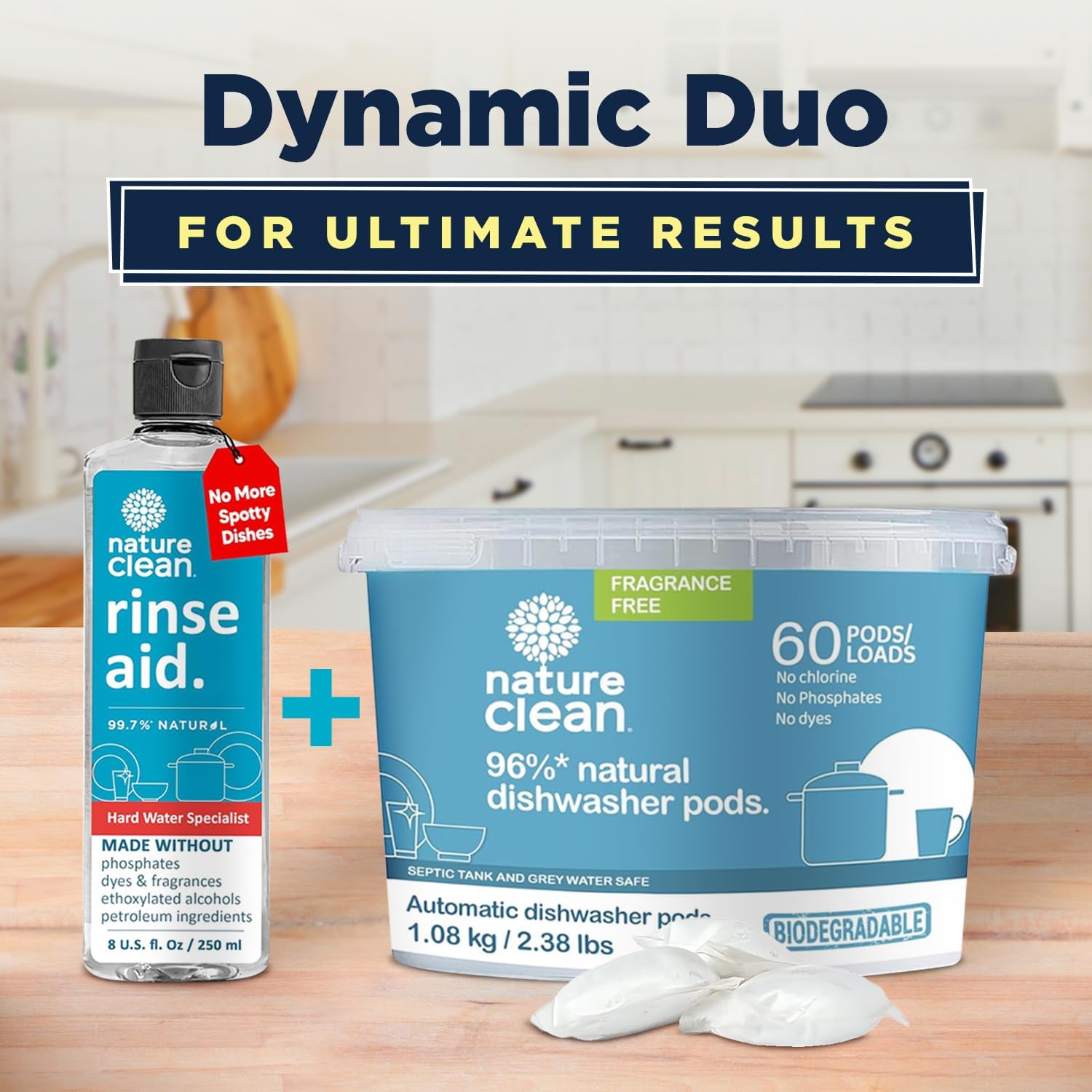 • Natural Dishwasher Pods: Nature Clean dishwasher pods are made with a plant-based formula free from chlorine, phosphates, and dyes; Enjoy spotless dishes with dish detergent pods that keep harmful chemicals out of your home while delivering a safe, powerful clean