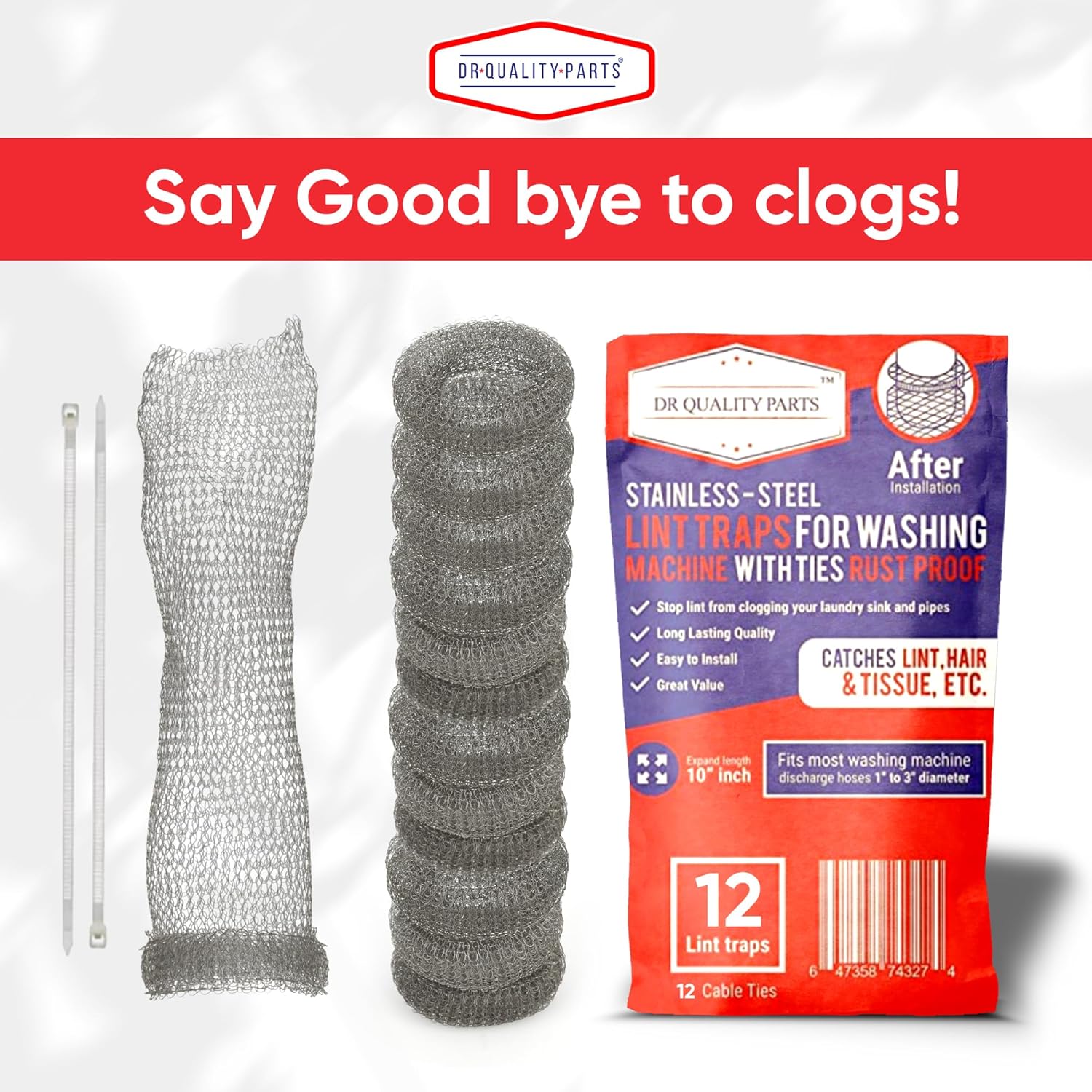 • PREMIUM MATERIAL & ROBUST DESIGN: Crafted from 304 stainless steel mesh with durable nylon cable ties, every DR Quality Parts Washing Machine Lint Trap is built for daily use and reliable filtration. Sturdy construction helps capture lint, threads, and laundry residue while resisting rust and tearing for long-term performance. This essential washer hose filter is a practical safeguard for any laundry room, making it hassle-free to maintaini clean drain lines.