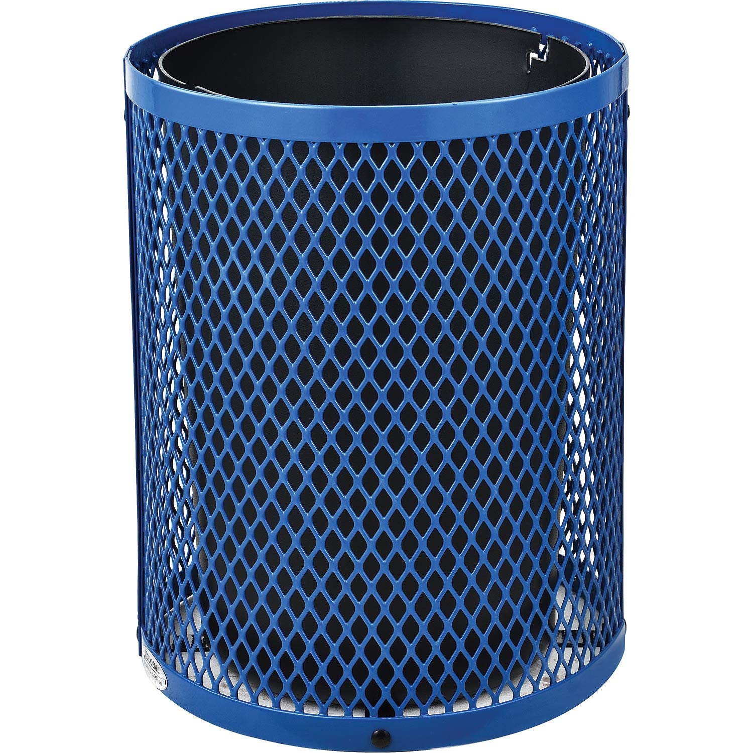 Global Industrial Outdoor Diamond Steel Trash Can with Rain Bonnet Lid and Plastic Liner, 36 Gallon Capacity, Blue, Thermoplastic Coating, 23-1/2" Diameter, 40-1/2"H