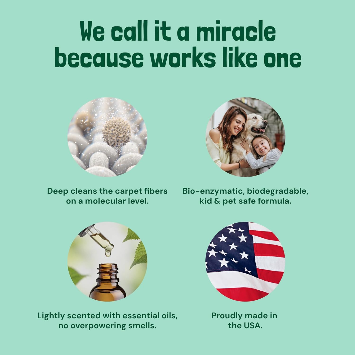 • Pet and Family Friendly: Our pet carpet cleaner solution is crafted with clean ingredients, ideal for homes with pets and kids. Feel confident using this carpet cleaner for pets, knowing it's safe for your loved ones