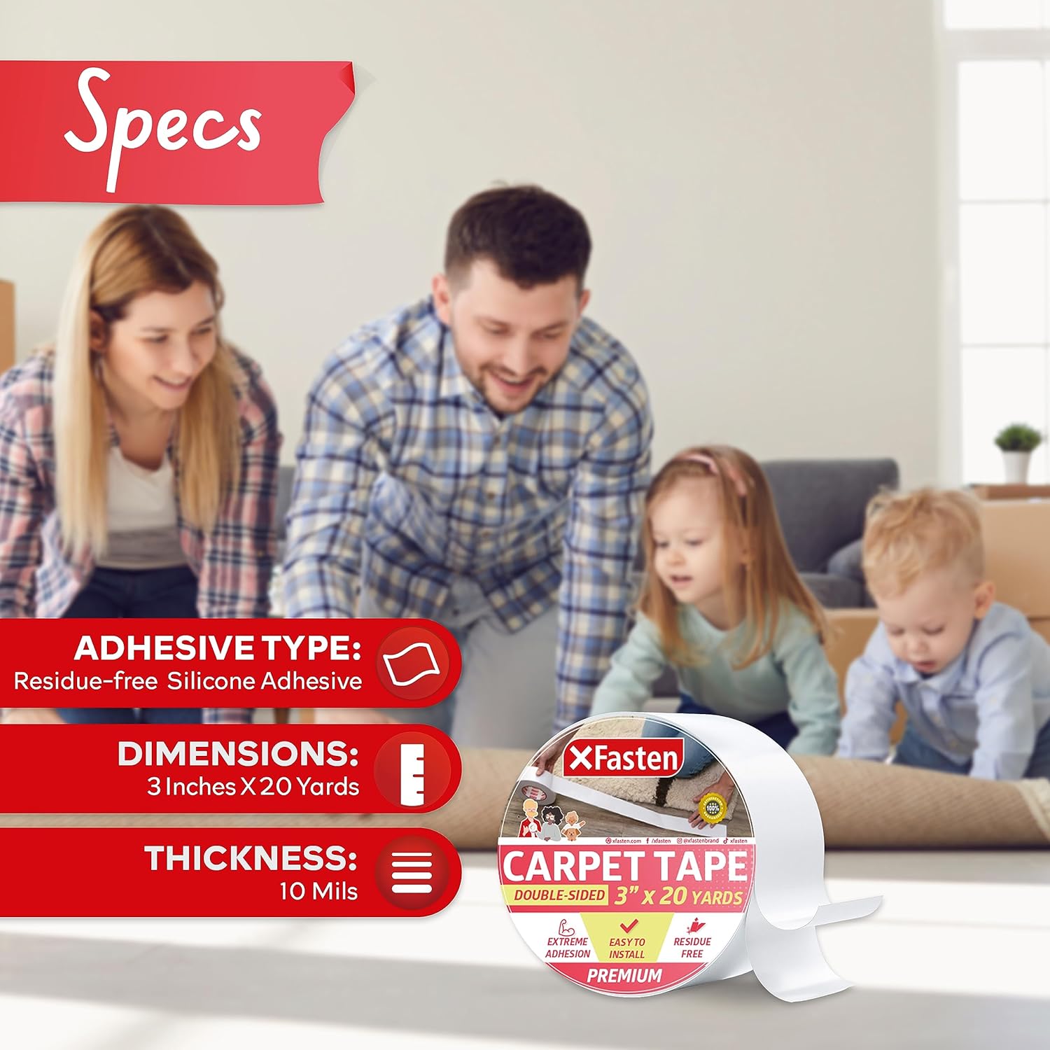 XFasten Double Sided Carpet Tape for Area Rugs, 3 Inch x 20 Yards – Heavy Duty Anti Slip Rug Grip Tape, Works as Rug Gripper, Residue Free, Wood Safe, Easy Removal for Hardwood and Laminate Floor