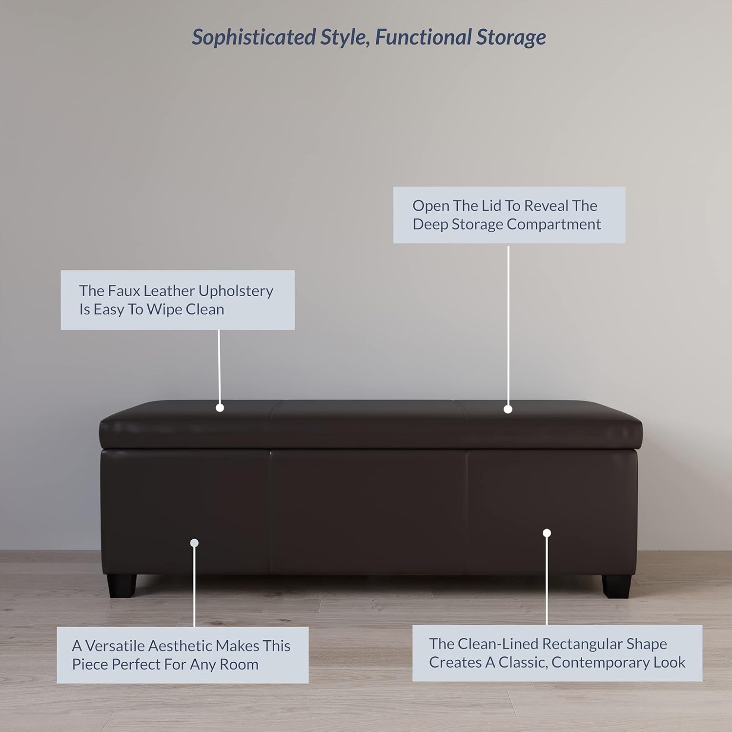 BELLEZE Storage Faux Leather Ottoman, 47 Inch Bench Bedroom Bench with Safety Close Hinge, Extra Long Ottoman with Storage for Living Room, Entryway, Hallway, Foot Rest, Support 300lbs - Brown
