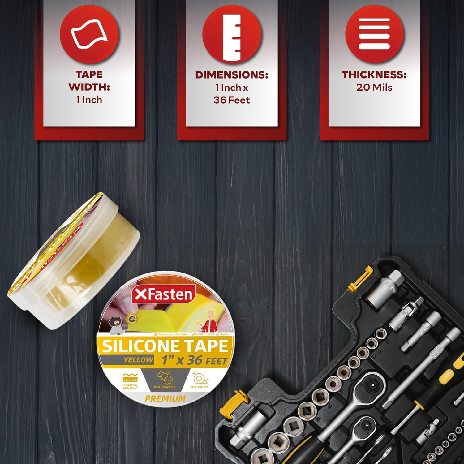XFasten Self Fusing Silicone Tape Waterproof – 1" x 36 Feet Yellow, Self Amalgamating Tape, Silicone Rubber for Plumbing, Sealing Pipes, Hose Repair, Outdoor Coax and Electrical Cables – Weatherproof