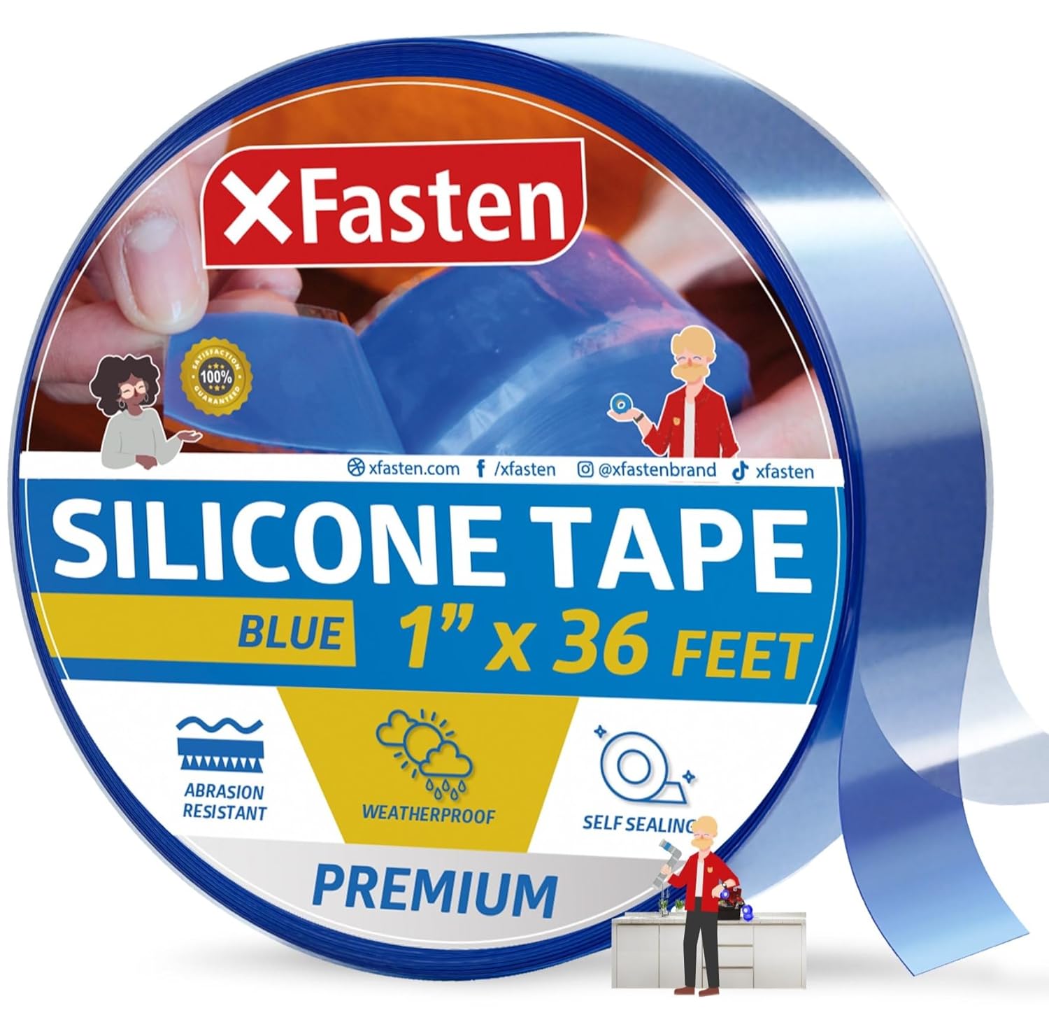 XFasten Self Fusing Silicone Tape Waterproof – 1" x 36 Feet Blue, Self Amalgamating Tape, Silicone Rubber for Plumbing, Sealing Pipes, Hose Repair, Outdoor Coax and Electrical Cables – Weatherproof