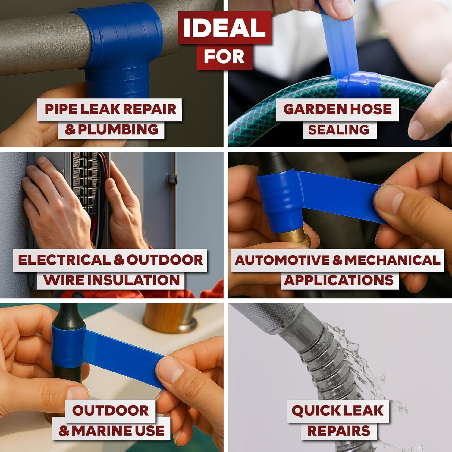 • Self-fusing Silicone Tape that does not melt up to 260°C (500°F) making it ideal for emergency repairs for automotive, plumbing, marine, hose, electrical, indoor and outdoor applications.