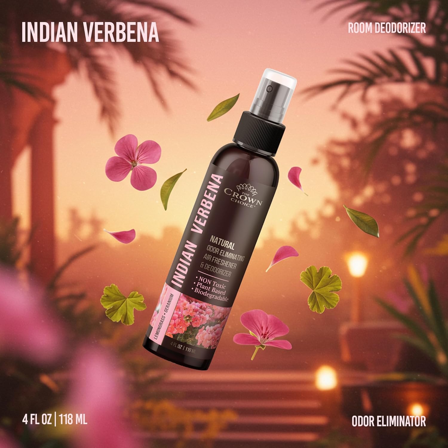 Natural Air Freshener Spray—Geranium & Lemongrass Odor Eliminator—Non-Toxic Essential Oil Deodorizer Spray for Home,Toilet,Room,Lounge,Laundry,Cabinet,Fabric;Safe for Kids & Pets—2PK- 4Oz each