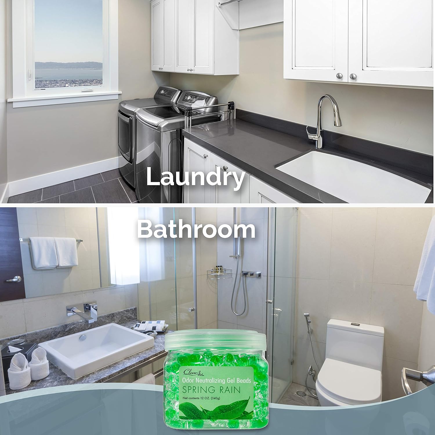 Clear Air Odor Eliminator Gel Beads - 12 oz, Pack of 2 - Air Freshener Made with Essential Oils - Eliminates Odors in Bathrooms, Cars, Boats, RVs & Pet Areas - Spring Rain Scent