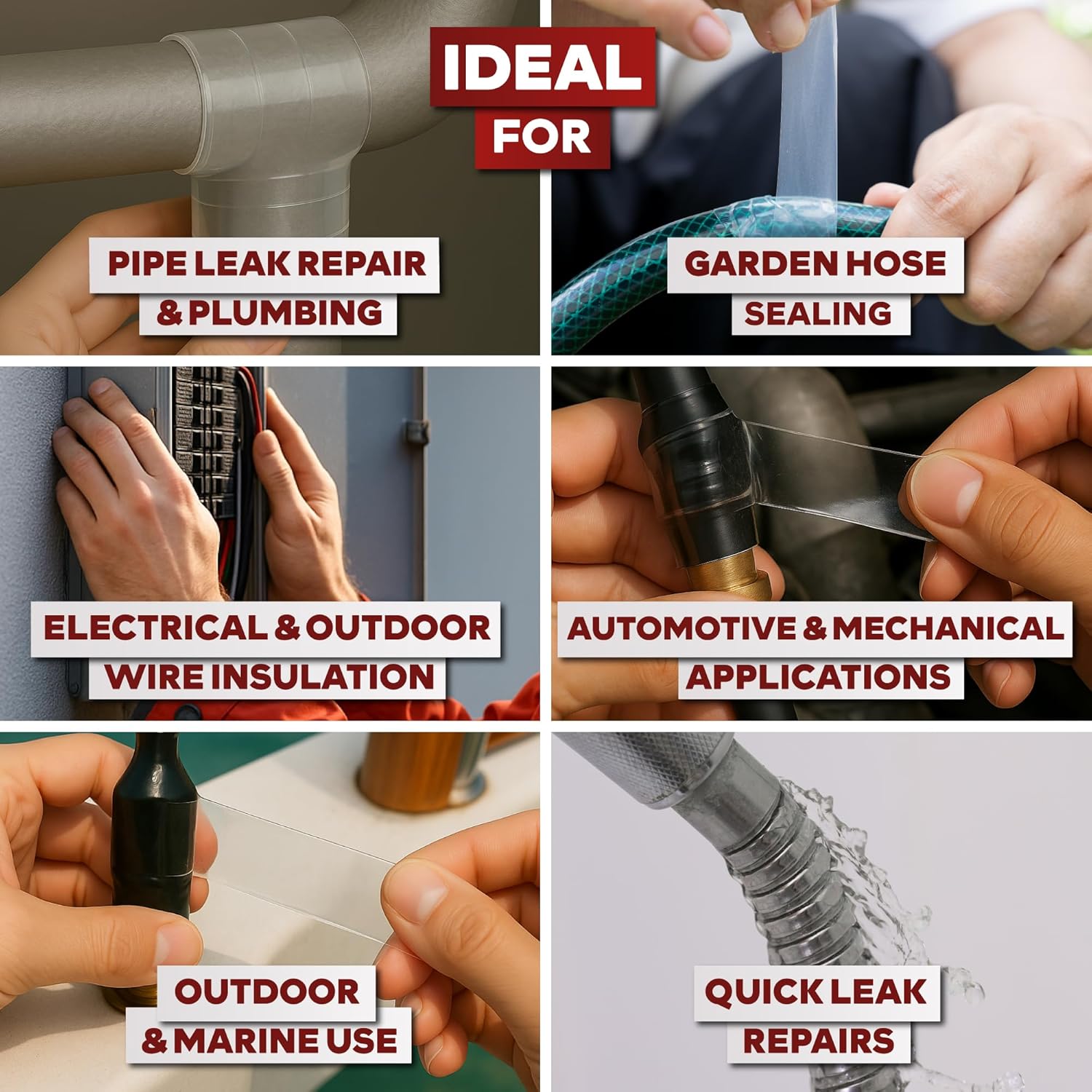 • Self-fusing Silicone Tape that does not melt up to 260°C (500°F) making it ideal for emergency repairs for automotive, plumbing, marine, hose, electrical, indoor and outdoor applications.