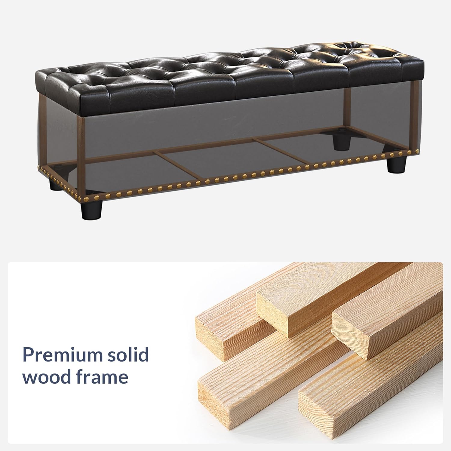 BELLEZE 47" Storage Ottoman, Storage Bench with Safety Close Hinge, Faux Leather Button-Tufted Ottoman for Living Room, Entryway, Hallway, Foot Rest, Support 300lbs - Dark Brown
