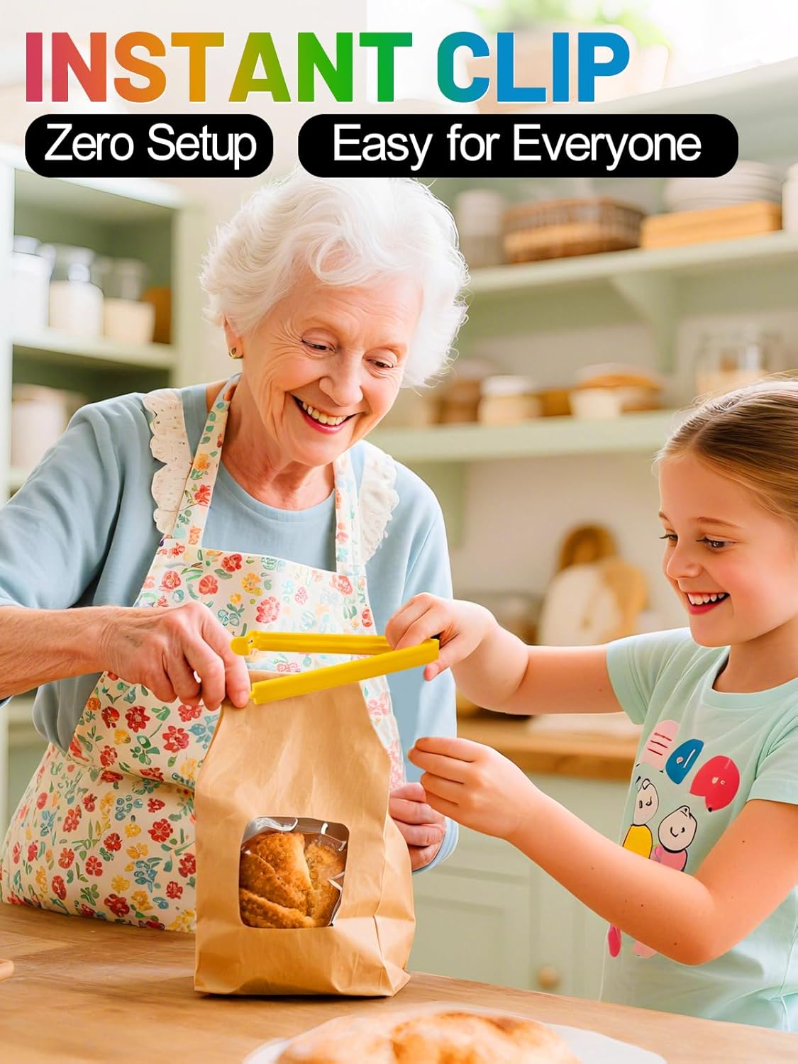 • Super Simple for Anyone: Designed for quick, hassle-free use! The intuitive clip-style closure clips on in seconds — no complicated steps. Safe, smooth edges and a manageable grip make keeping snacks fresh a breeze for all ages.