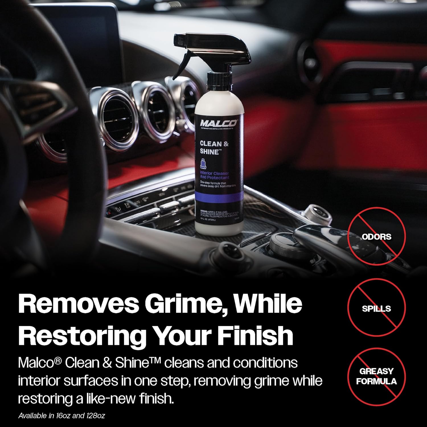 • THE "ALL-PURPOSE" CLEANER: Do you have stains, spills or dirt that is keeping your car's interior from looking its best? Learn what the Pros use! Malco’s Clean & Shine is one of the leading all-purpose cleaners on the market!