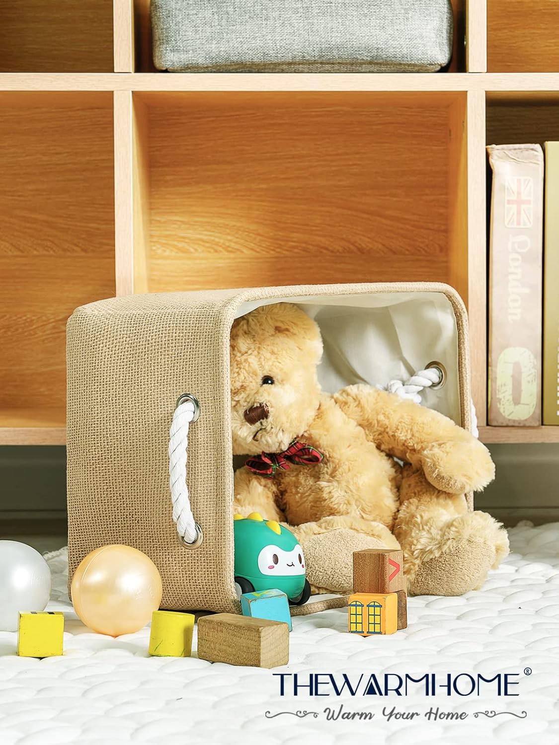 • MULTI-PURPOSE:Great for books,magazines,toy storage,dog toys basket,shoe basket,clothes basket,shelf,baby bin,pet toy storage,towel basket,blankets,decorations,office supplies,DVD and gifts,Decorative basket ideal for living room,bedroom,bathrooms,utility room,kids room,Nursery Room,craft room,playroom,closet,dorms,condos,laundry room,toilet or even in the hallway.Neutral color can match a lot of home styles- keeping your home nice and tidy