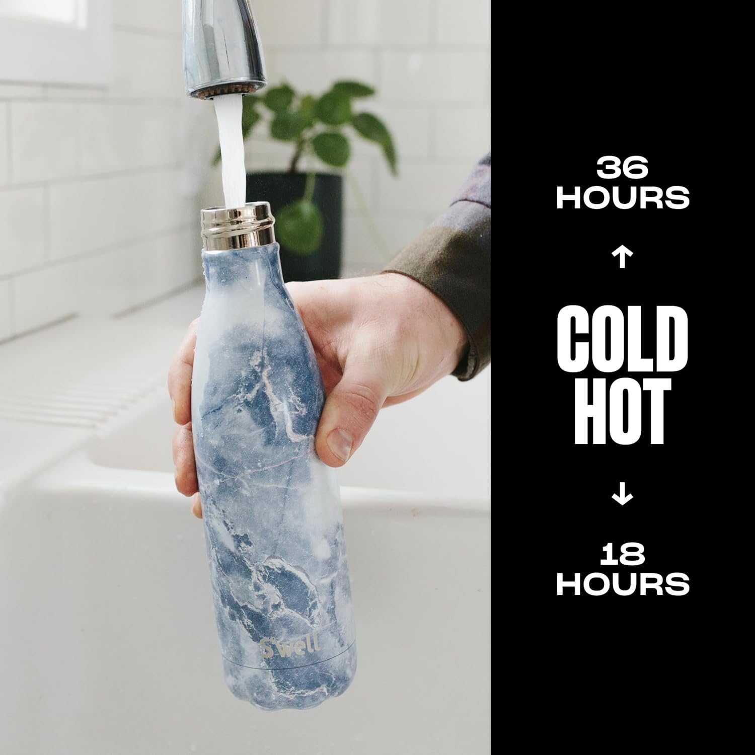 • TRIPLE-LAYERED INSULATION: S’well 17oz Bottle with stainless steel. Triple-layered, vacuum-insulated construction. Exclusive Therma-S’well Technology keeps beverages cold for 36 hours and hot for 18. Sleek and beautifully crafted. Hand-wash only.