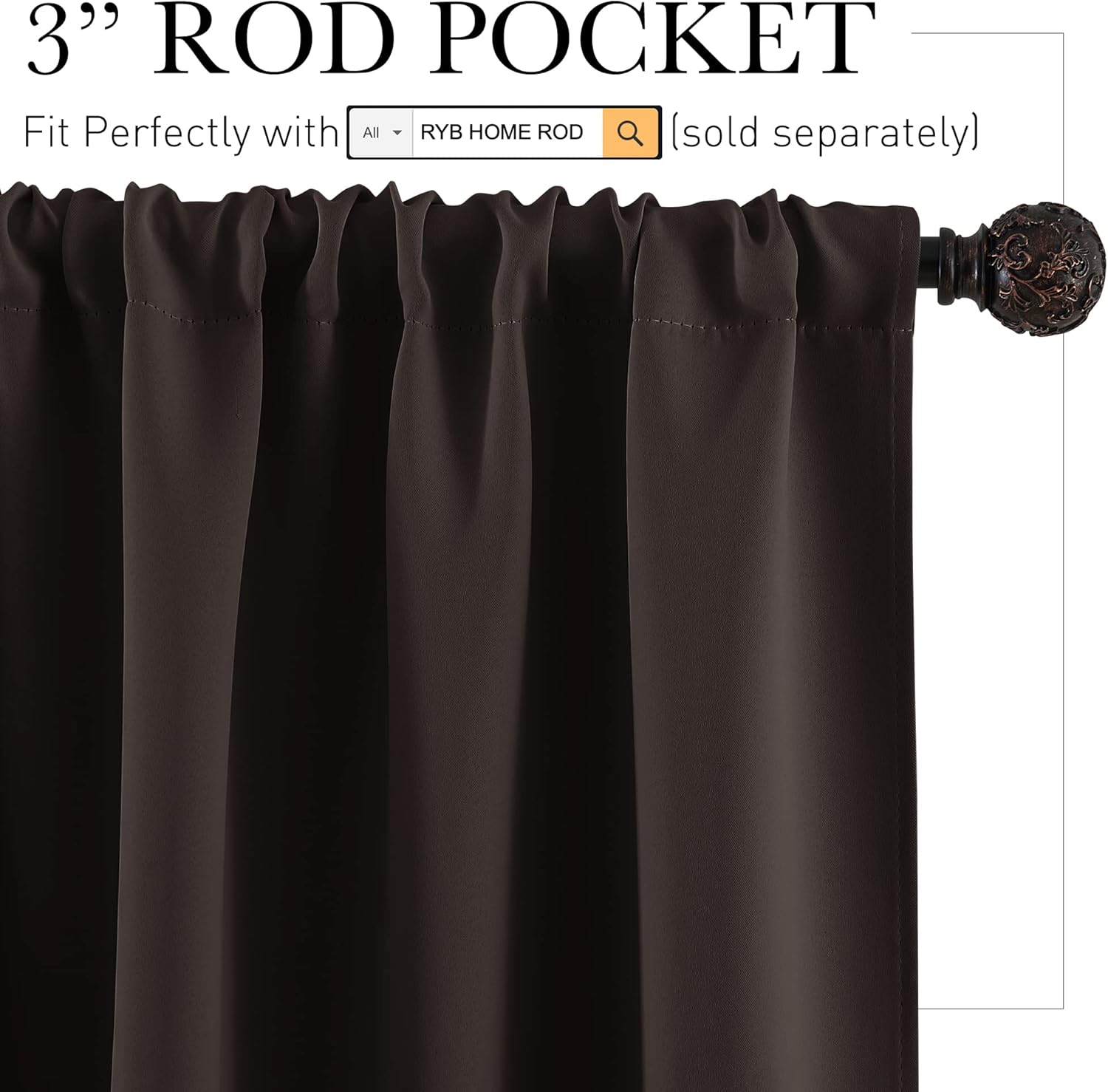 RYB HOME Bedroom Blackout Curtains - Thermal Insulated Noise Reducing Room Darkening Curtains Sunlight Shades Draperies for Nursery Bedroom Bathroom, 42 W x 45 L, Brown, Set of 2
