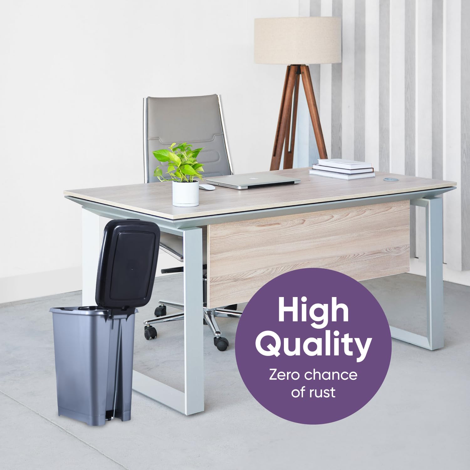 • ZERO CHANCE OF RUST AND EASY TO CLEAN – Unlike stainless steel trash cans, our trash can is made of plastic that is easy to rinse and will not rust. Also, a nice choice for office settings because it has no exposed metal parts that might scratch or dent. With a slim design and a durable plastic construction, this trash can will keep your area clean, tidy, and sanitary.
