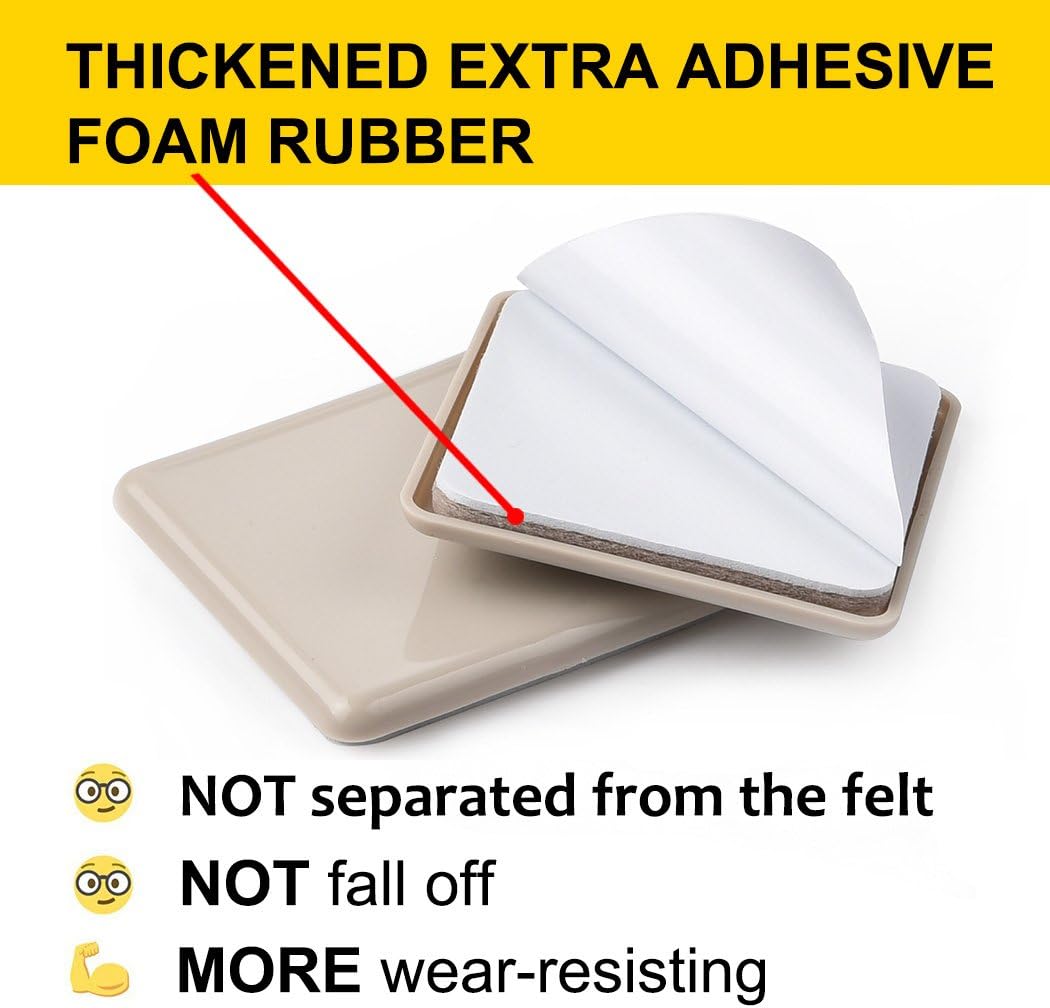 • ☛【Package Includes】- (16 Pack) 2.5 inch square reusable self-adhesive furniture moving sliders, Beige.