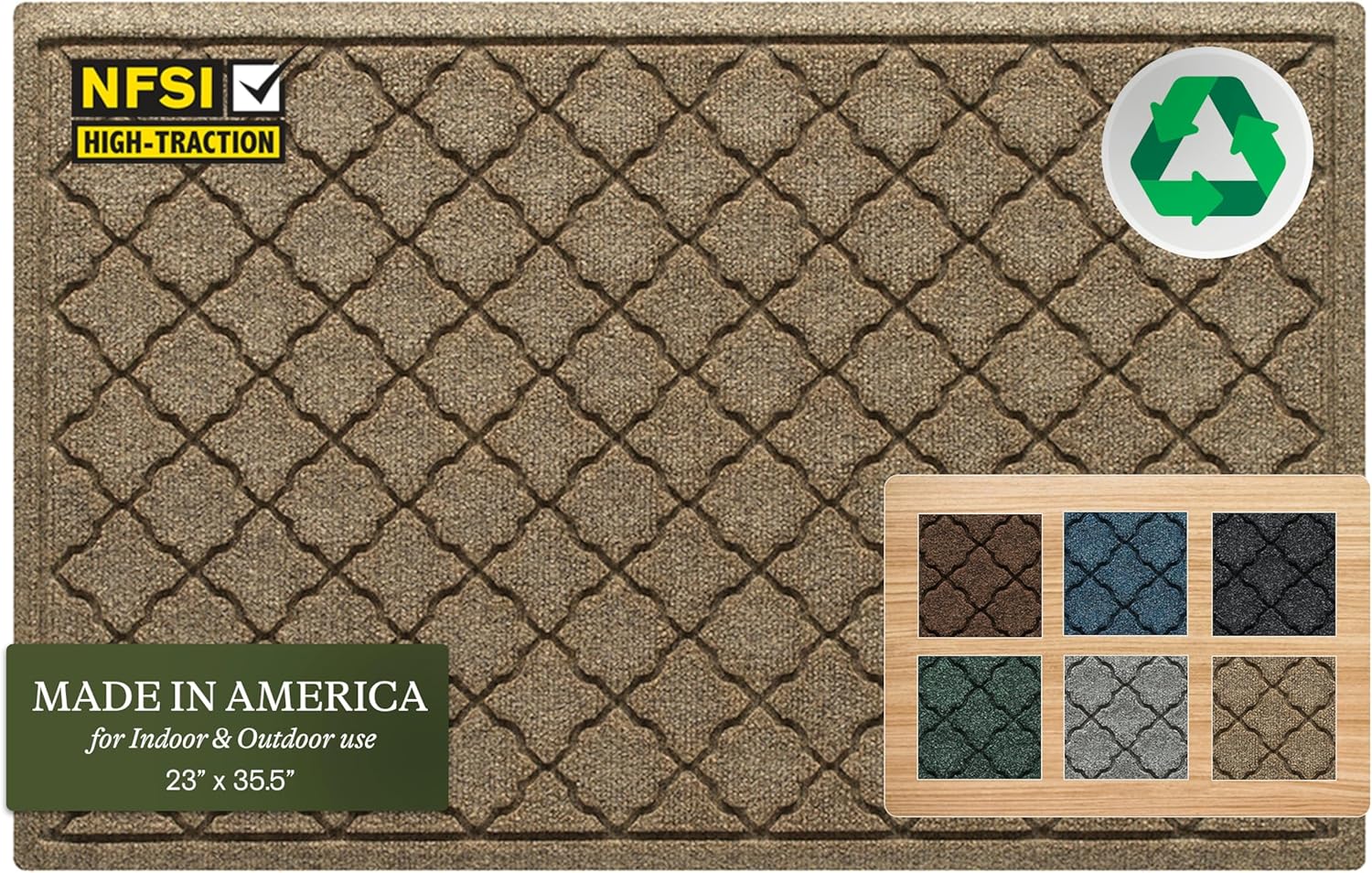 • DURABLE, ECOLOGICAL CONSTRUCTION: Made in the USA, our WaterHog entrance mat is crafted with up to 90% recycled PET fiber and 20% recycled rubber backing, ensuring durability and long-lasting performance in high-traffic areas, both indoors and outdoors.