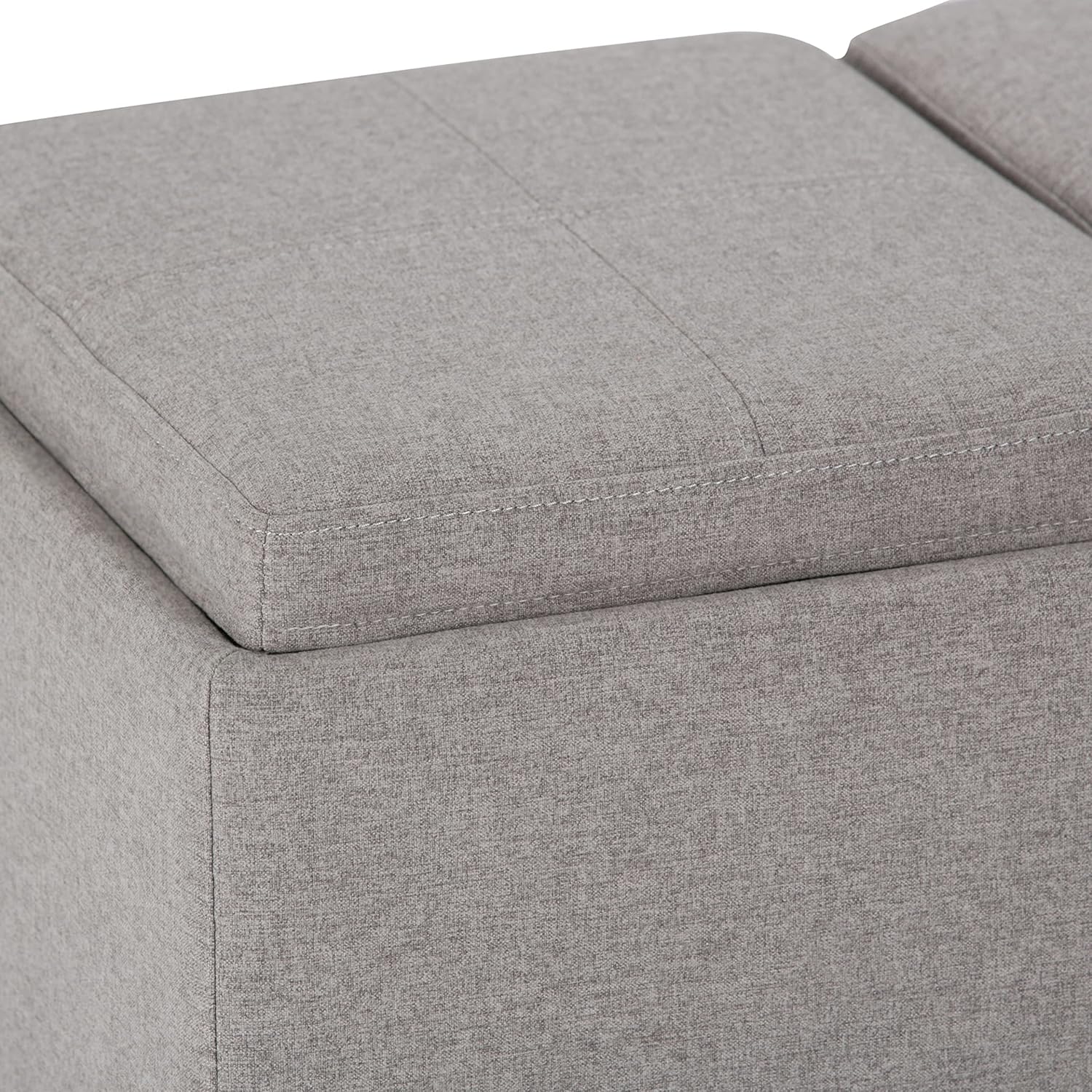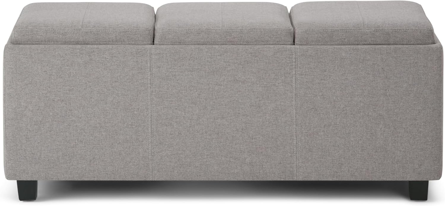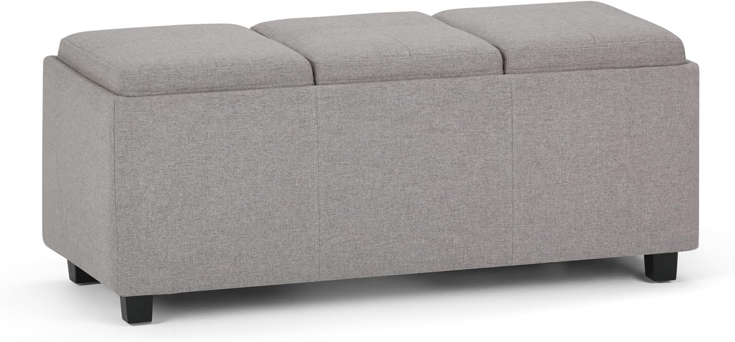 SIMPLIHOME Avalon 42 inch Wide Contemporary Rectangle Storage Ottoman in Cloud Grey Linen Look Fabric, Assembled, for the Living Room, Entryway and Family Room