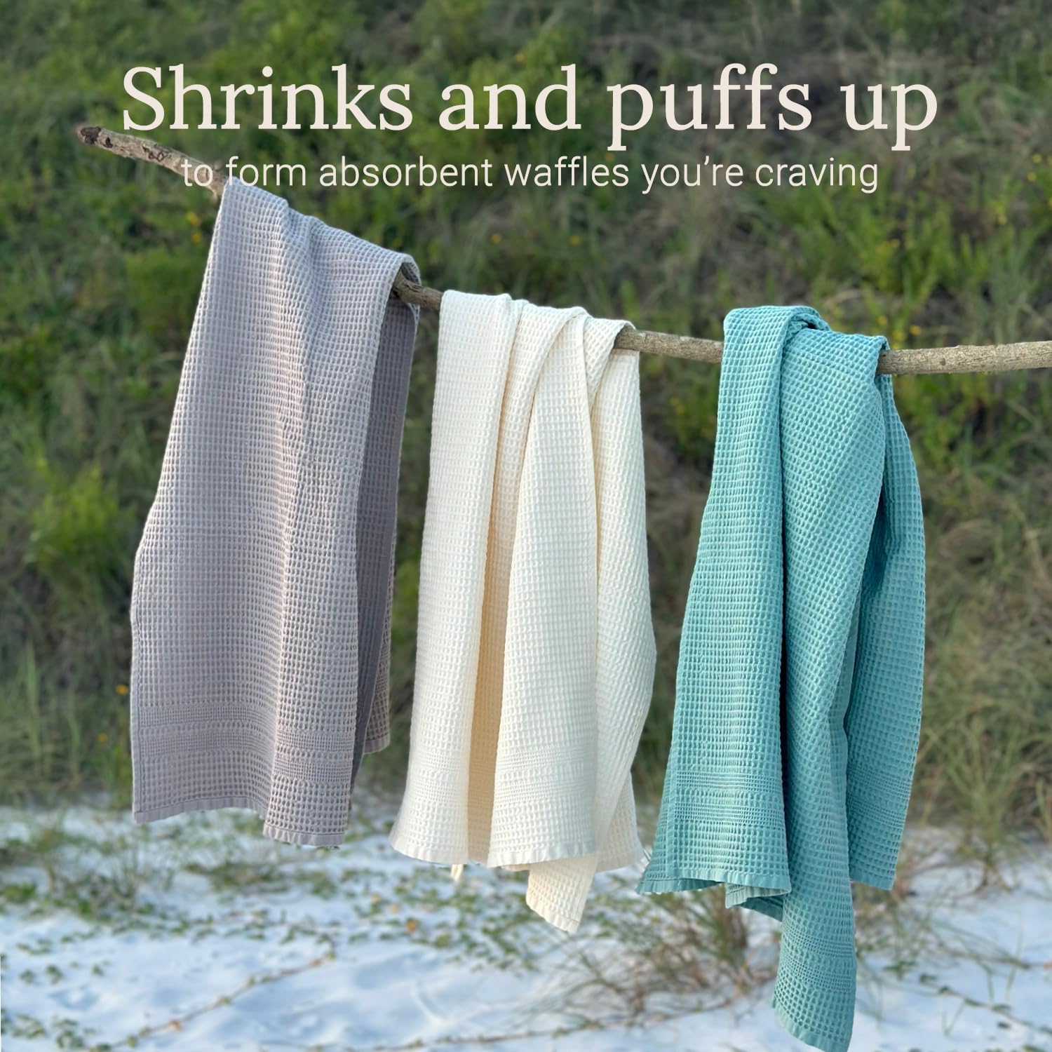• Lightweight Waffle Bath Towels: Completely wraps around your body and stays tucked in. Naturally thin bath towels take up less space in your closet, laundry machine, beach towel bag, pool towels bag, suitcase, boat, camper, RV or yacht.