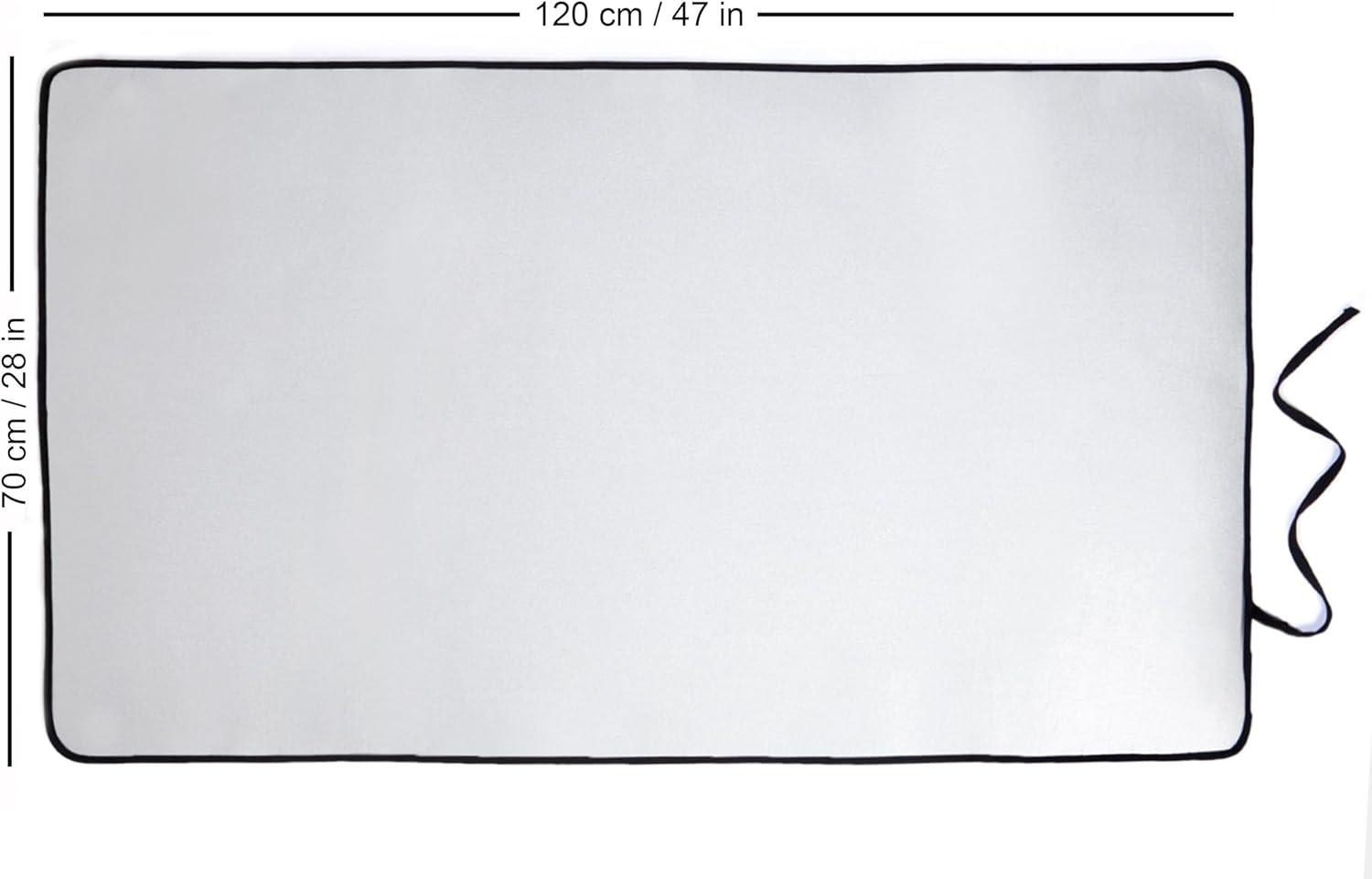 • SIZE: Large size (48"x28") Ironing Mat for use on Dining Table and Bed. Easily foldable for storage. The width is almost double of most Ironing Boards, so this allows convenient ironing of Large Garments like Gowns, Dresses & Trousers.
