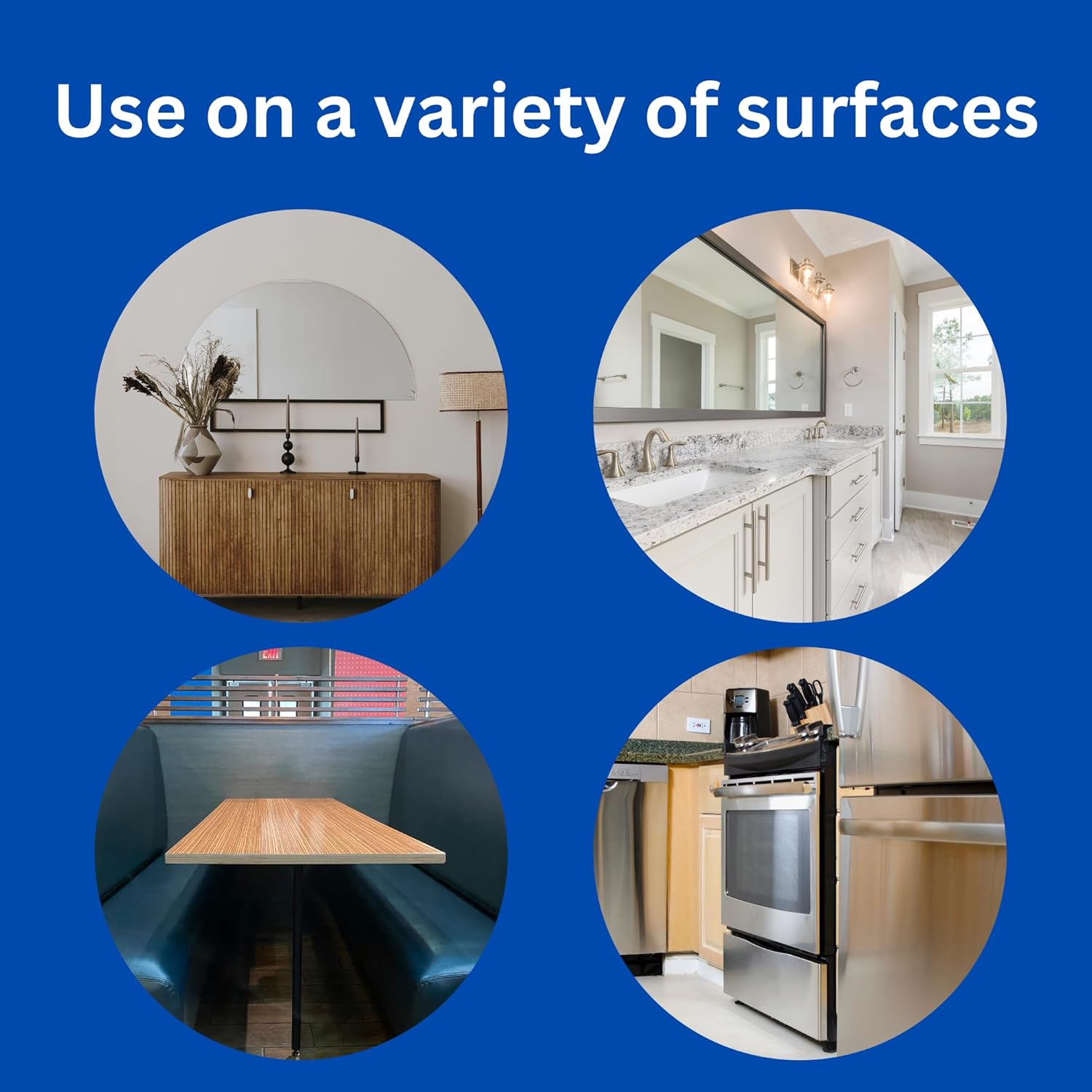 • Use on a variety of furniture surfaces including wood, painted and metal furniture/cabinets, chrome/stainless steel, vinyl and leather upholstery, plastic countertops and appliances.