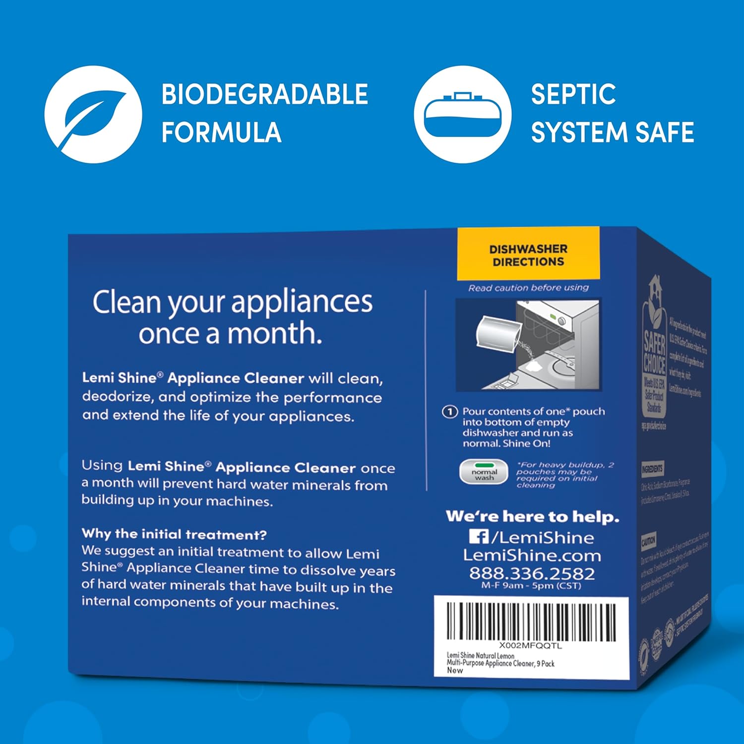 Lemi Shine Appliance Cleaner & Deodorizer - Dishwasher, Washing Machine, and Garbage Disposal Citric Acid Cleaner - 22.5 oz (9 Pack)