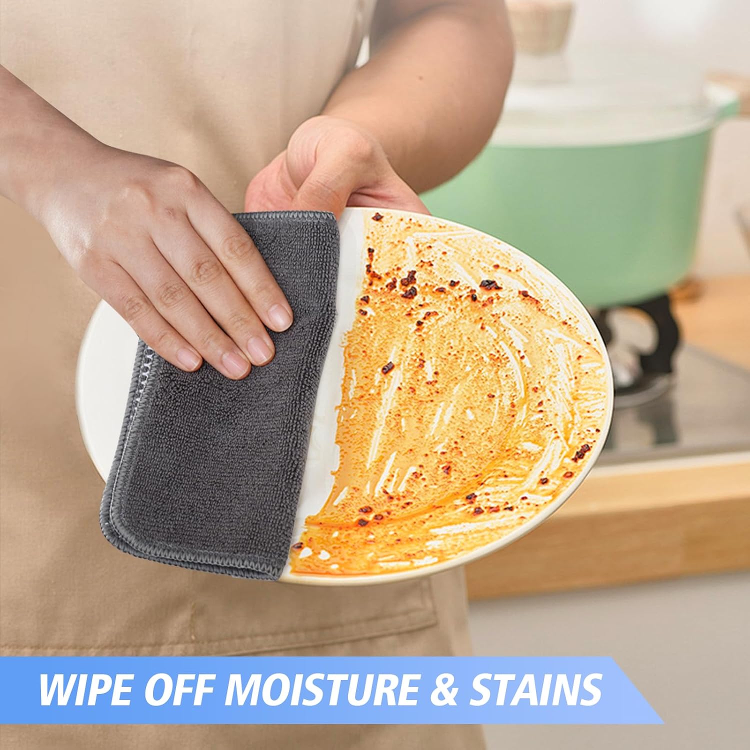 • SOFT & DURABLE MICRO FIBER DISH CLOTHS: They are made with a select 80/20 blend of microfiber for exceptional softness and durability. Soft enough to wipe stainless steel appliances, clean dishes, countertop and stovetop completely, rinse out well, and dry quickly